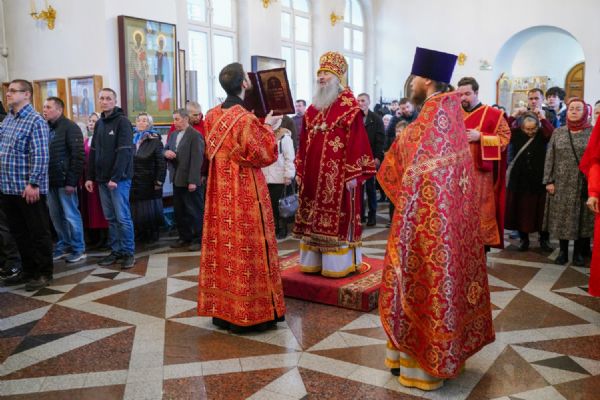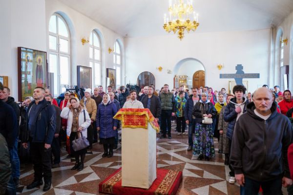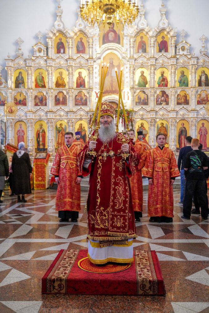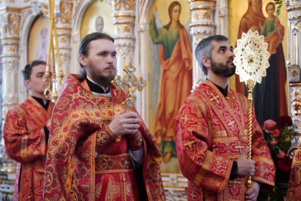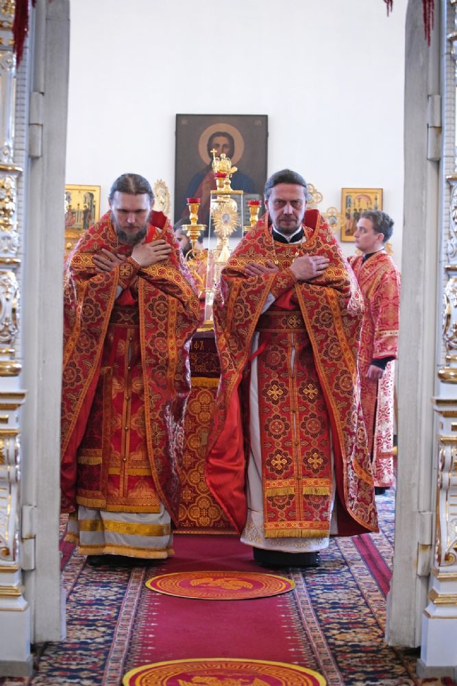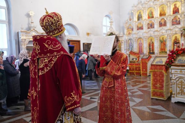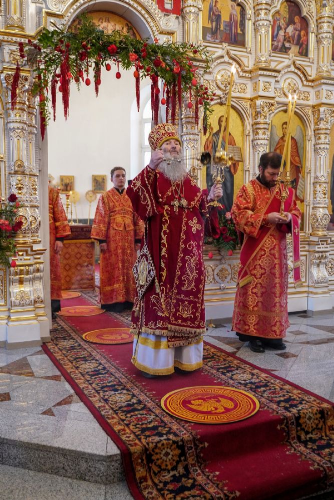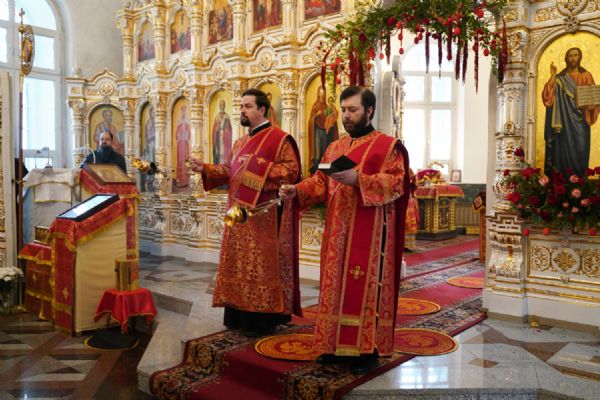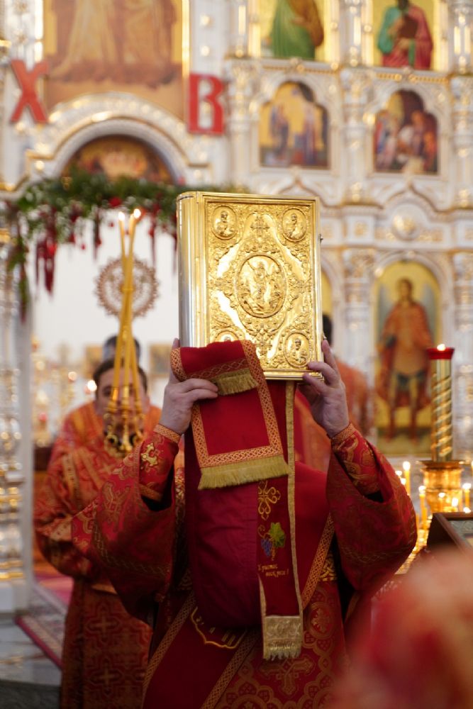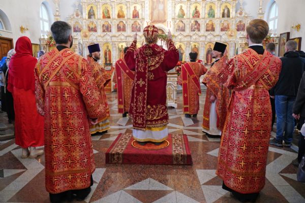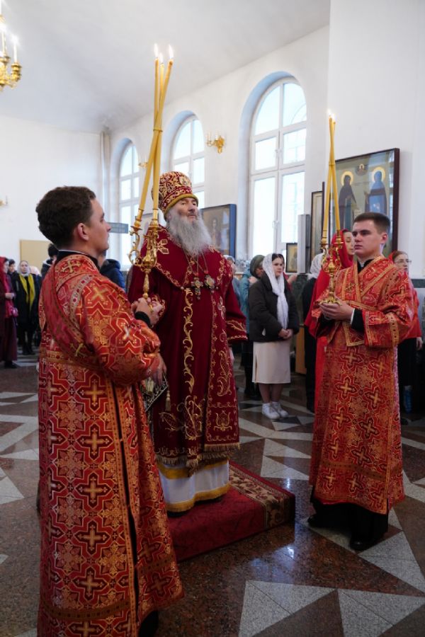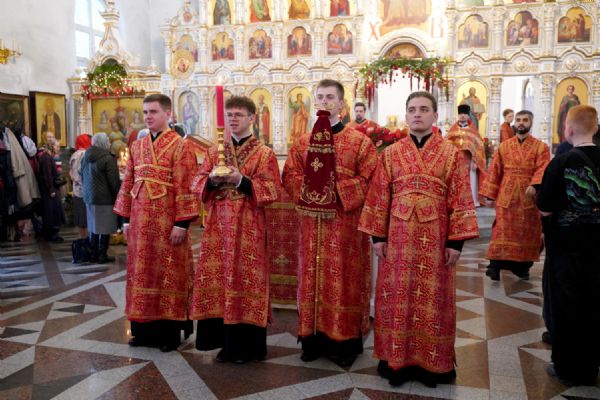 Владыке сослужили настоятель собора иерей Андрей Кочаков, клирики собора иерей Димитрий Лукьянов и диакон Алексий Кузнецов, а также клирик Благовещенского кафедрального собора диакон Артемий Бобоч. Песнопения исполнял хор собора под управлением Алисы Вылекжаниной.