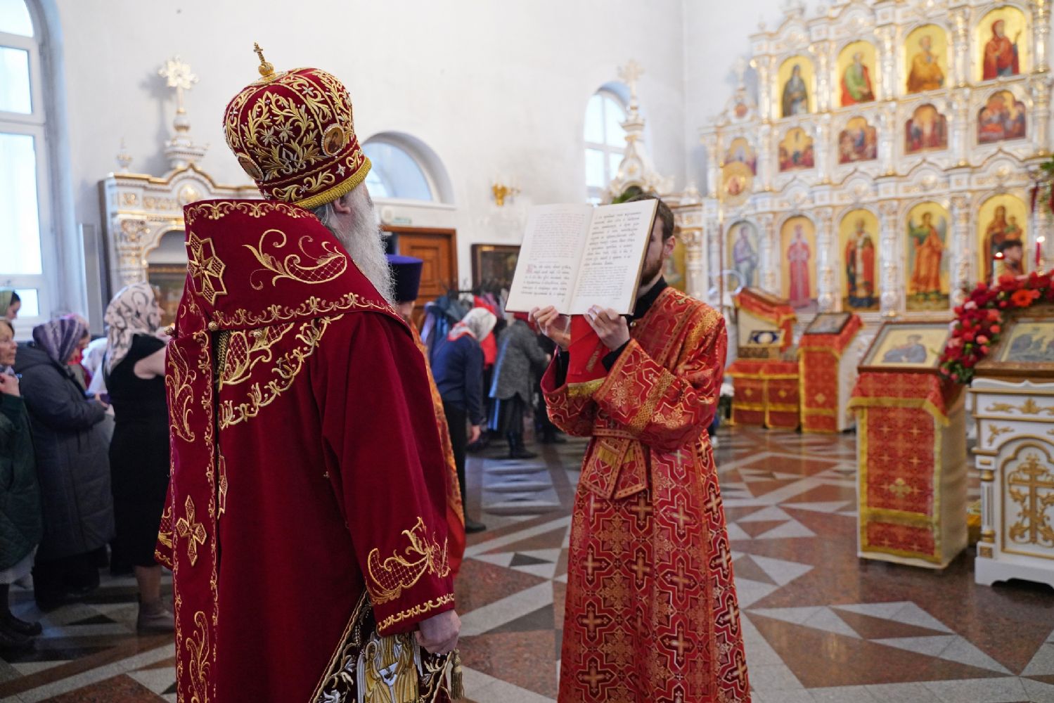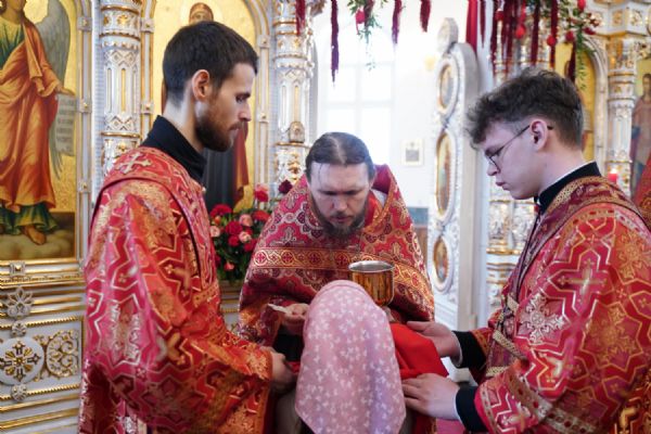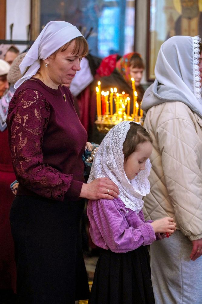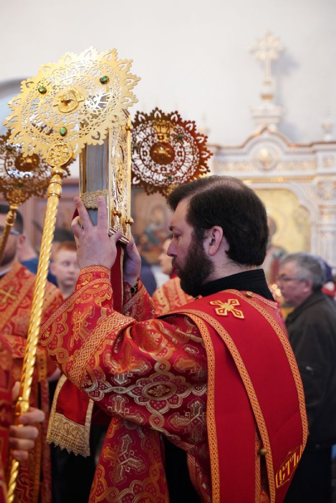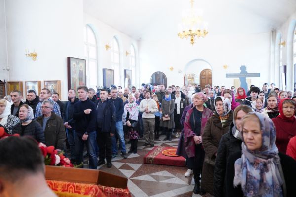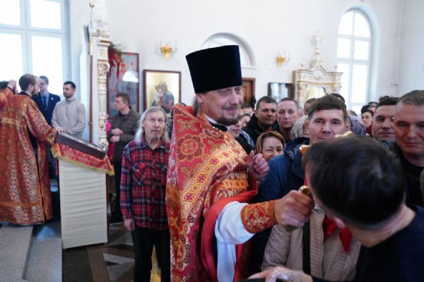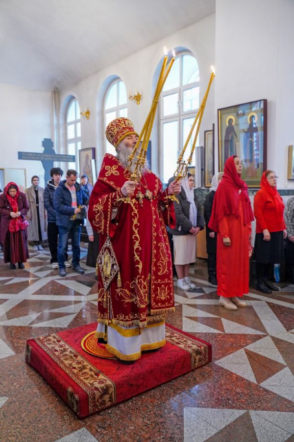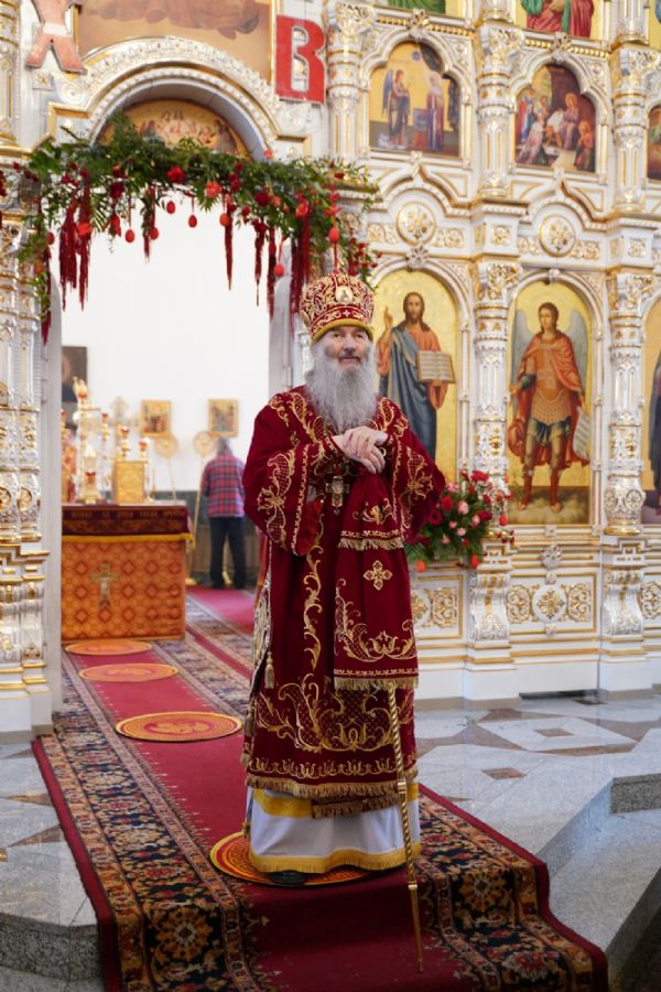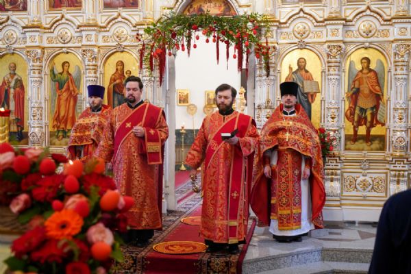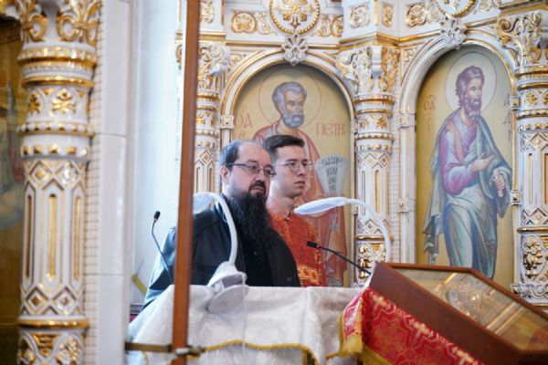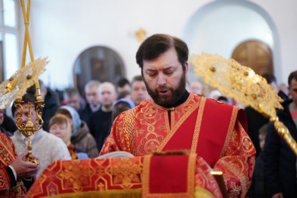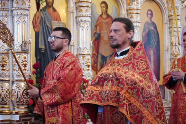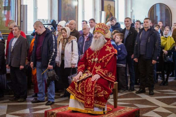 Владыке сослужили настоятель собора иерей Андрей Кочаков, клирики собора иерей Димитрий Лукьянов и диакон Алексий Кузнецов, а также клирик Благовещенского кафедрального собора диакон Артемий Бобоч. Песнопения исполнял хор собора под управлением Алисы Вылекжаниной.