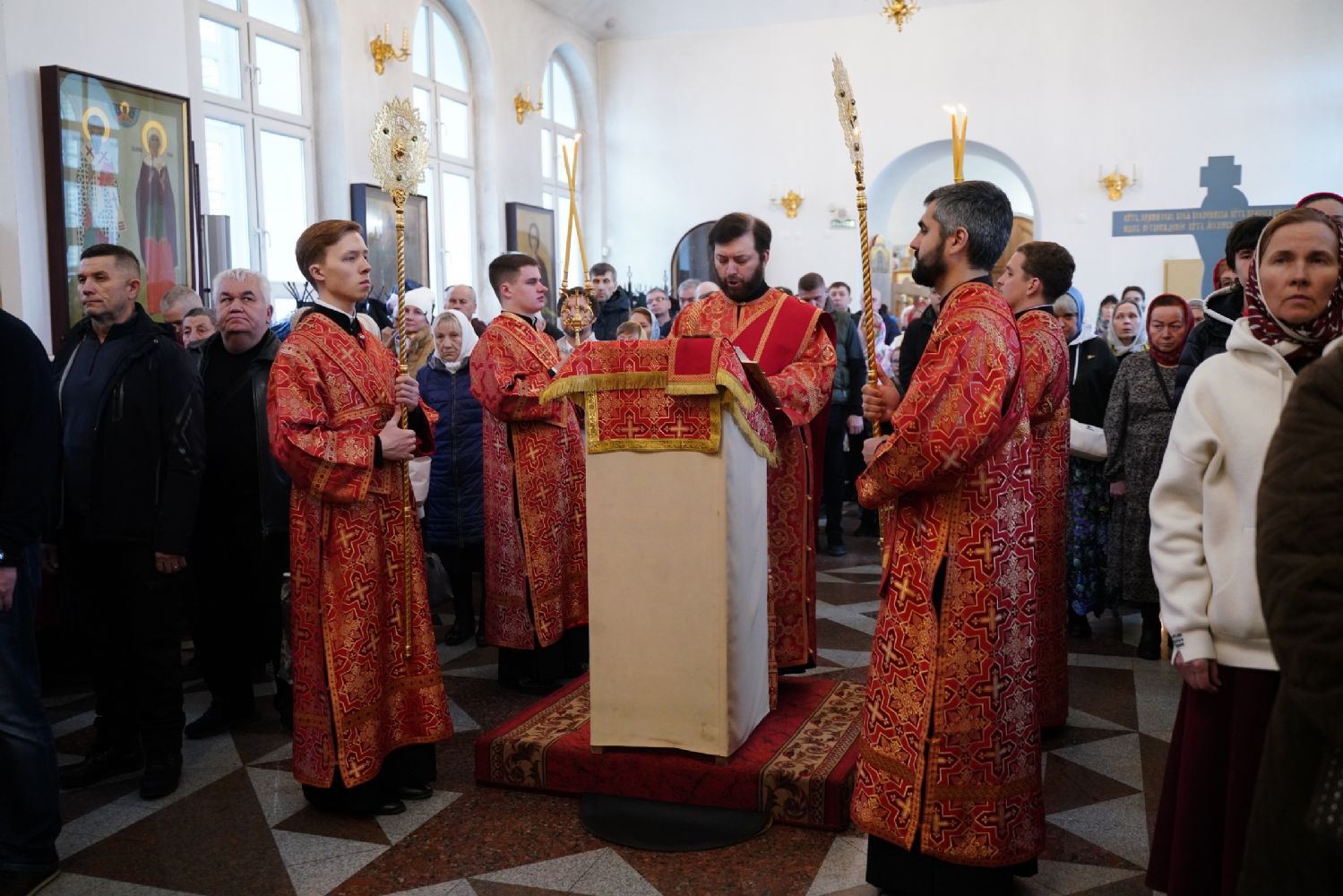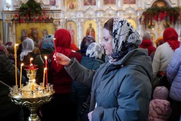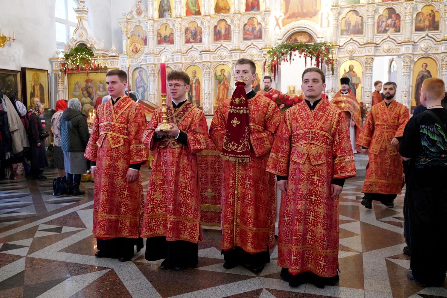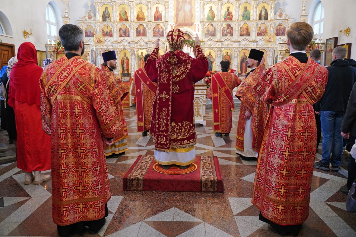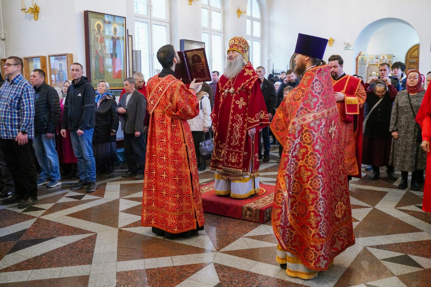 Владыке сослужили настоятель собора иерей Андрей Кочаков, клирики собора иерей Димитрий Лукьянов и диакон Алексий Кузнецов, а также клирик Благовещенского кафедрального собора диакон Артемий Бобоч. Песнопения исполнял хор собора под управлением Алисы Вылекжаниной.