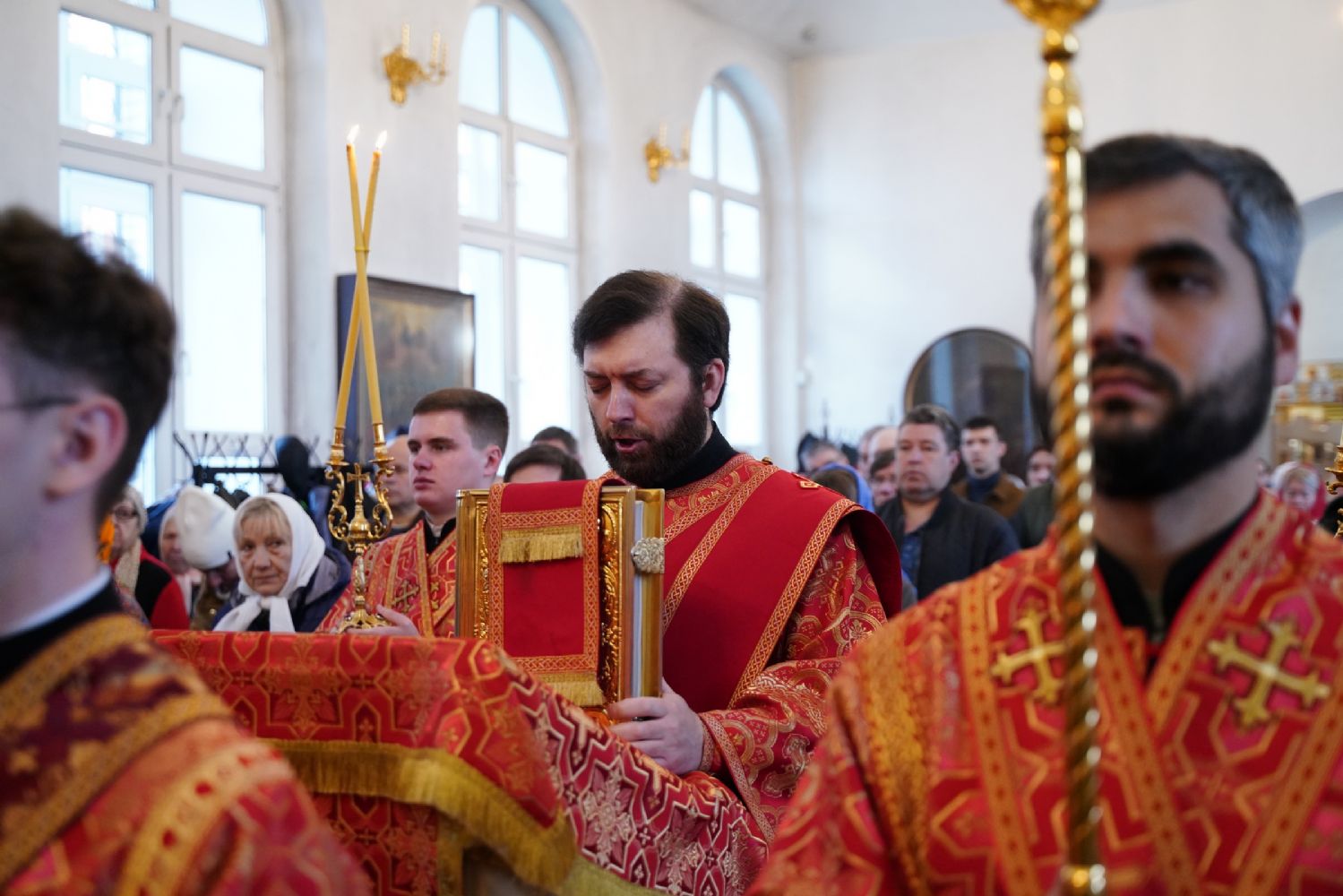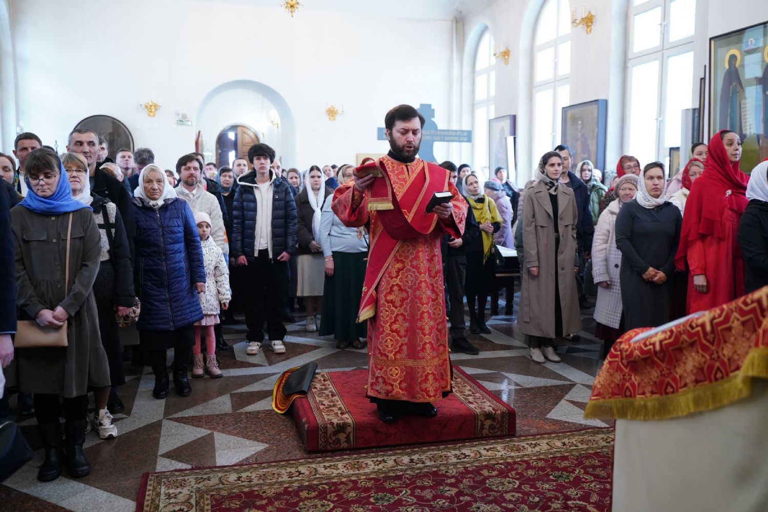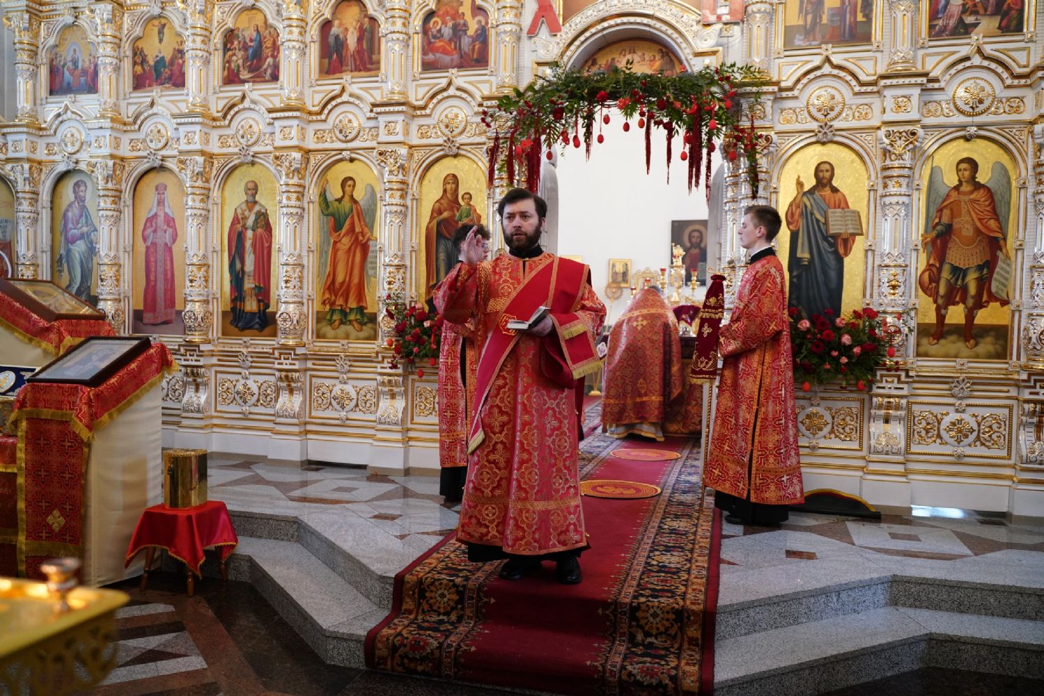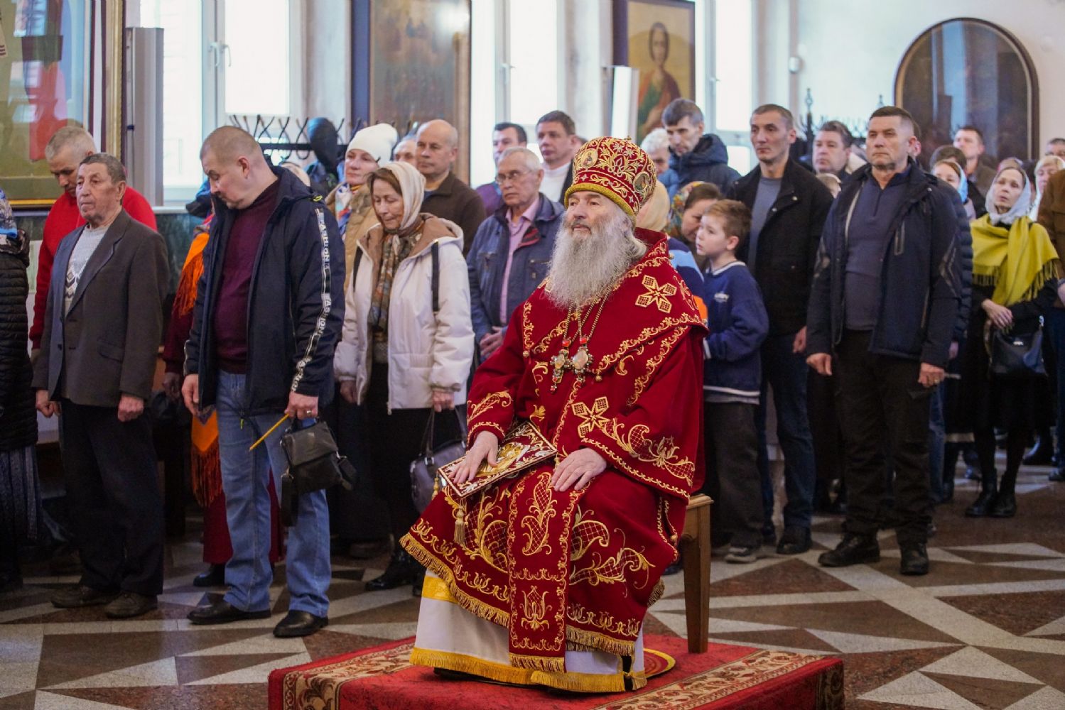 Владыке сослужили настоятель собора иерей Андрей Кочаков, клирики собора иерей Димитрий Лукьянов и диакон Алексий Кузнецов, а также клирик Благовещенского кафедрального собора диакон Артемий Бобоч. Песнопения исполнял хор собора под управлением Алисы Вылекжаниной.