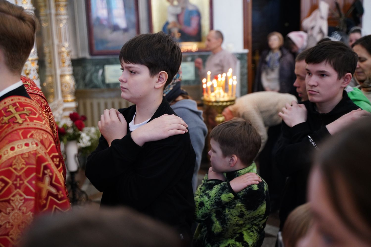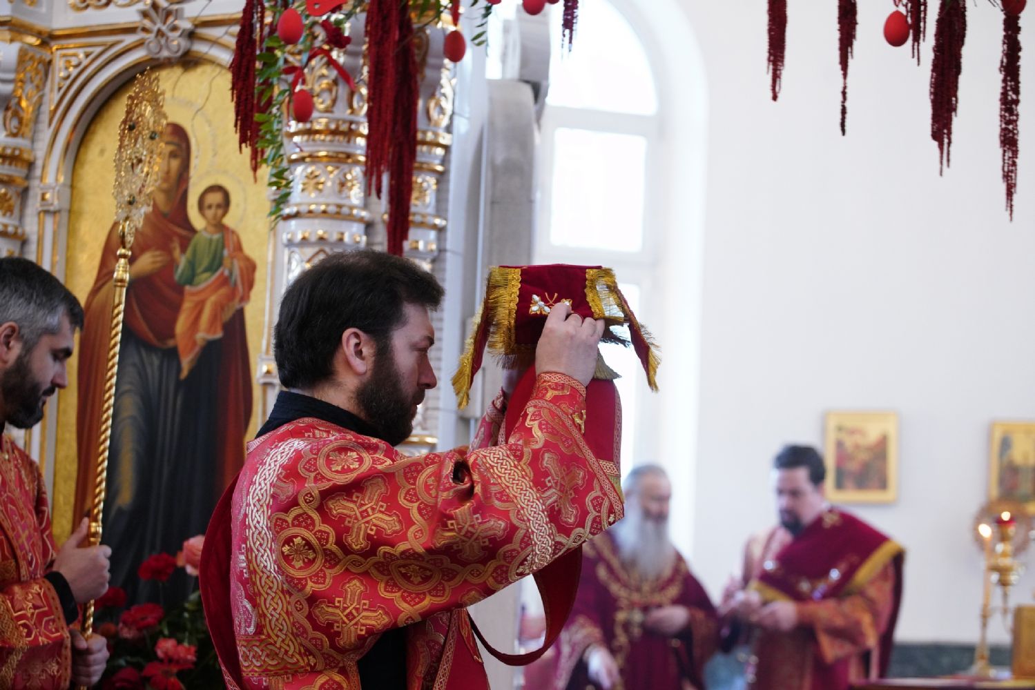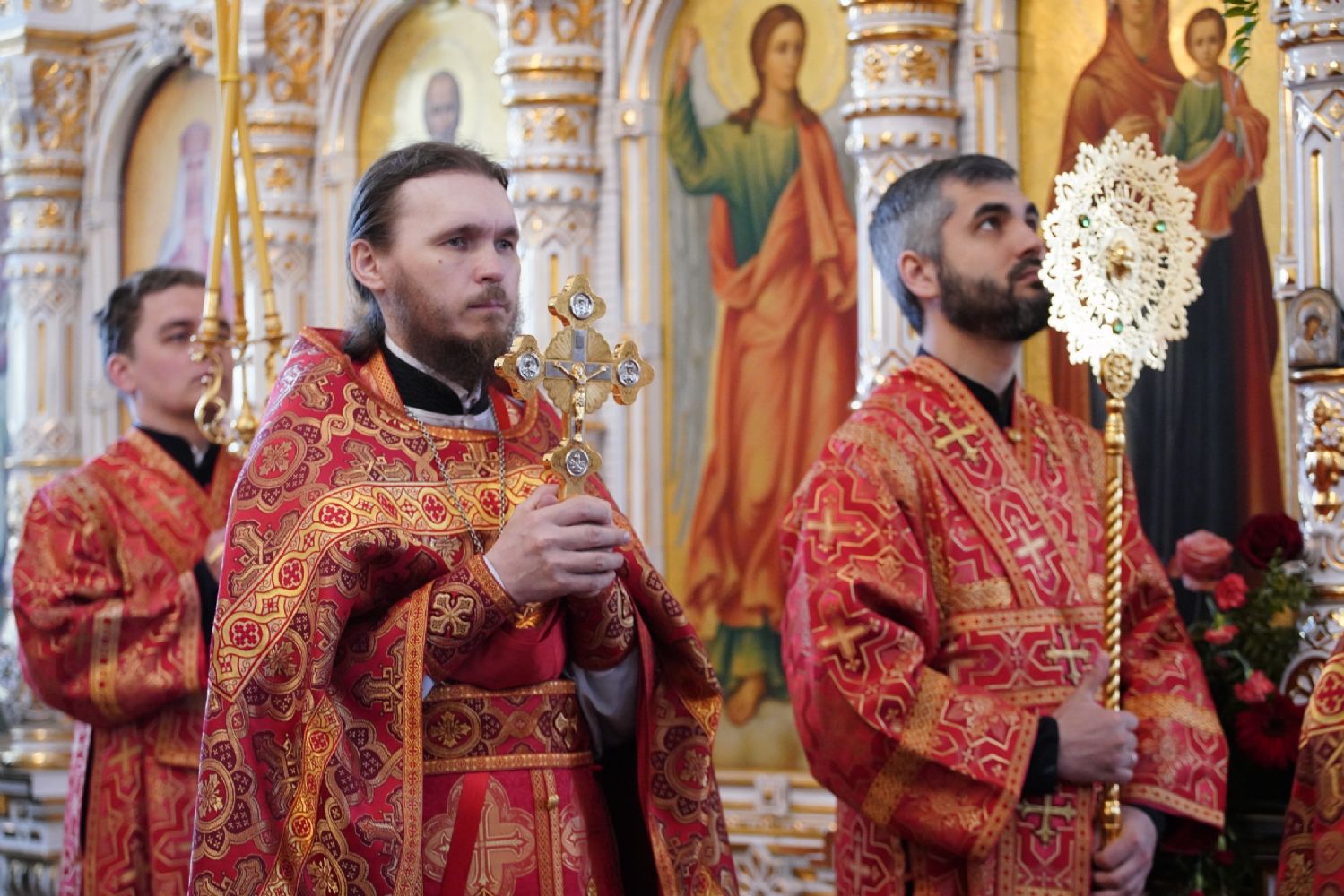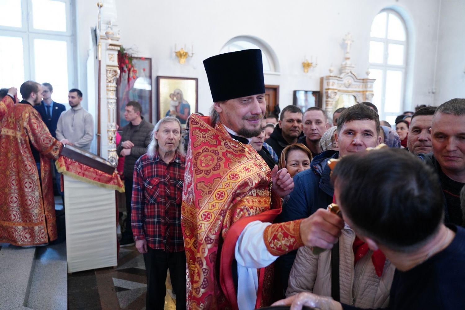 Владыке сослужили настоятель собора иерей Андрей Кочаков, клирики собора иерей Димитрий Лукьянов и диакон Алексий Кузнецов, а также клирик Благовещенского кафедрального собора диакон Артемий Бобоч. Песнопения исполнял хор собора под управлением Алисы Вылекжаниной.