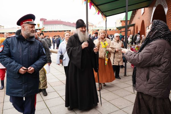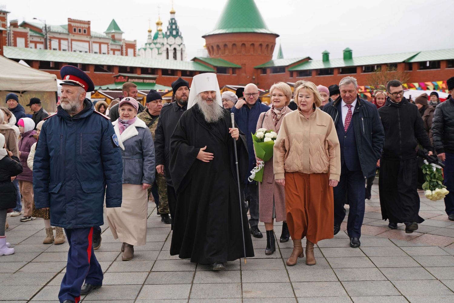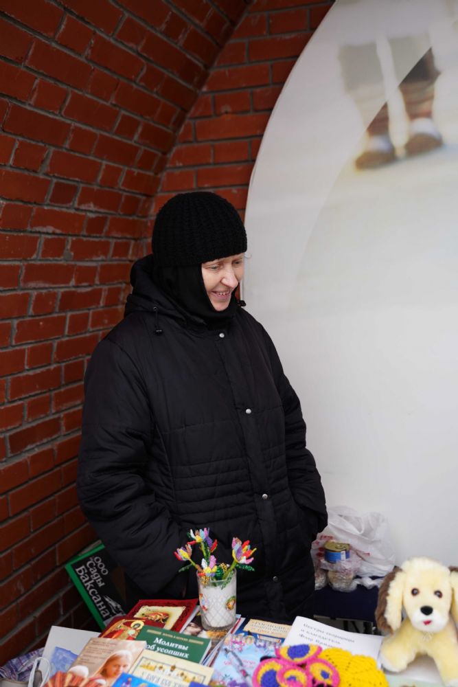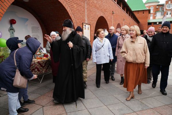 По всему периметру кремля раскинулись торговые ряды с фермерской сельхозпродукцией, изделиями народных промыслов, поделки воспитанников воскресных школ, православной литературой.