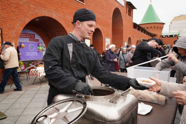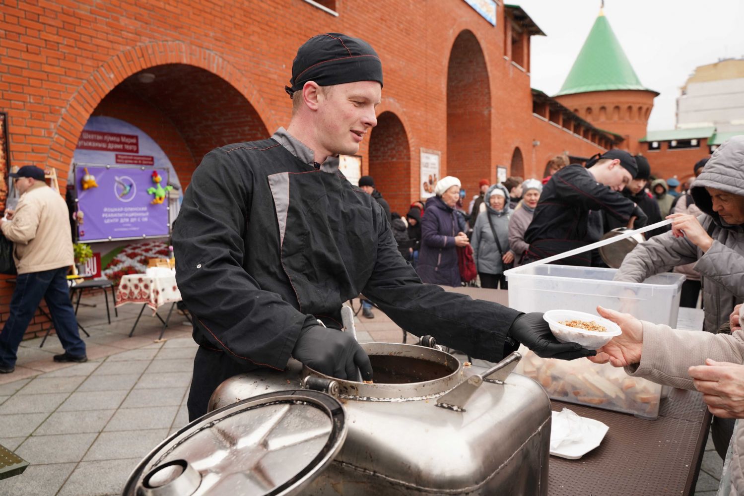 Для посетителей ярмарки были организованы подвижные игры и забавы, в которых с удовольствием участвовали как дети, так и взрослые. Сестры милосердия Йошкар-Олинской епархии угощали всех гречневой кашей с тушенкой и горячим чаем. Каждый желающий мог попробовать себя в роли звонаря на переносной звоннице у ворот кремля.