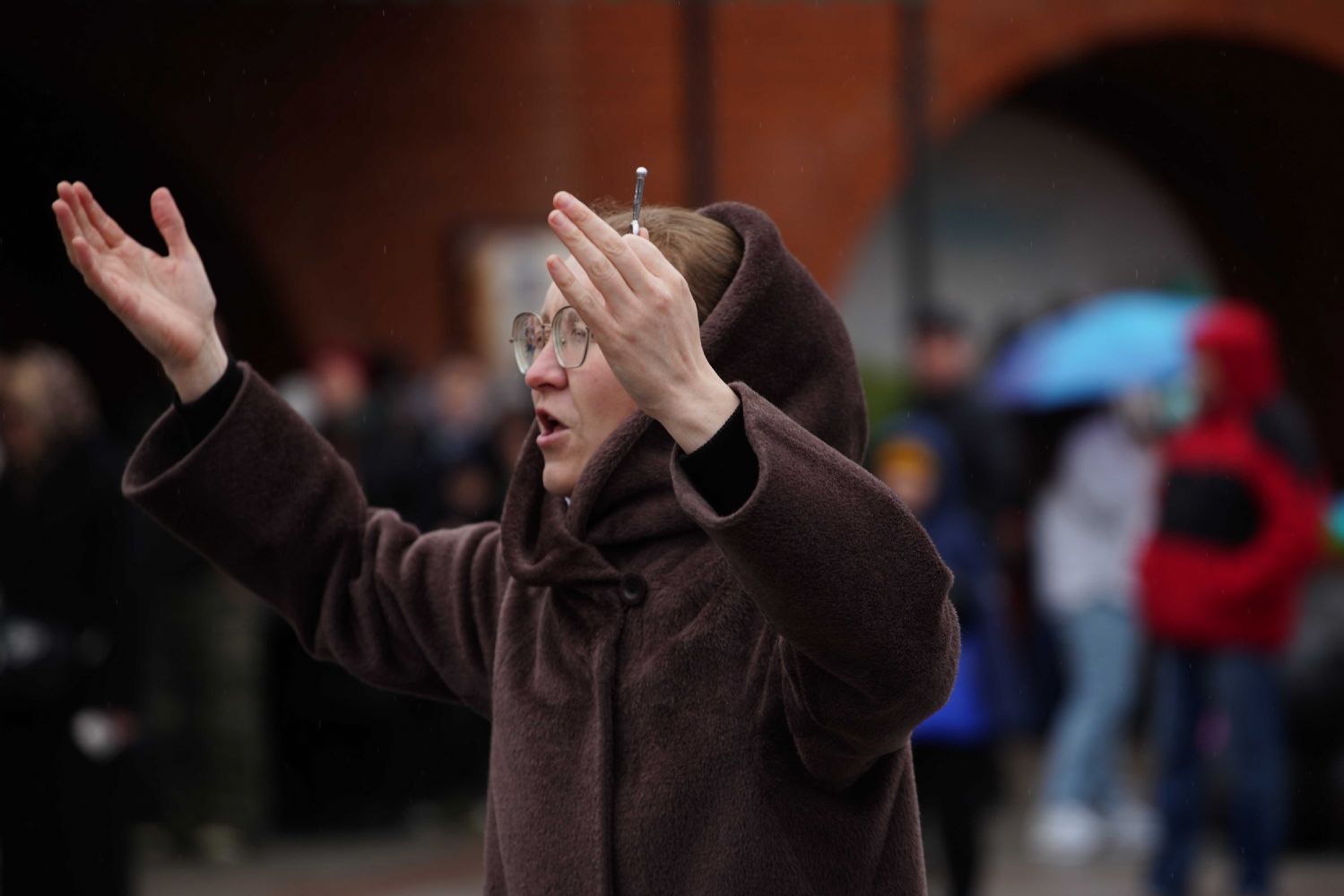 В рамках акции Синодального миссионерского отдела «Пасхальный диалог» Православные добровольцы во главе с руководителем движения диаконом Владимиром Лихачевым беседовали с горожанами о смыслах, связанных с праздником Христова Воскресения, раздавая в подарок буклеты о празднике и шоколадные пасхальные яйца.
