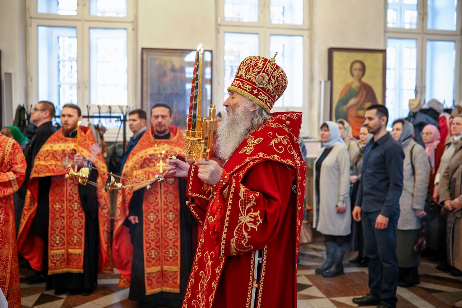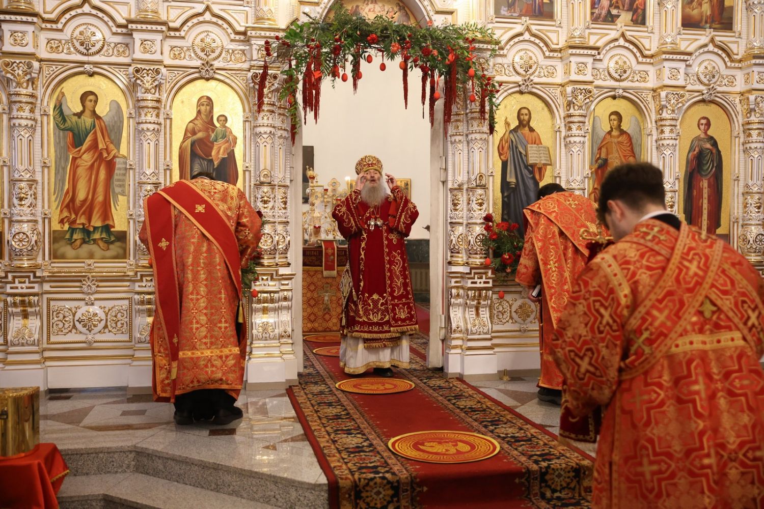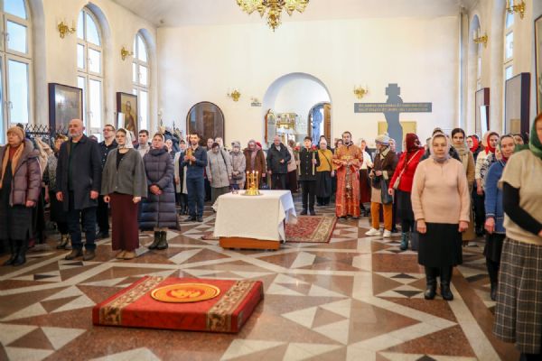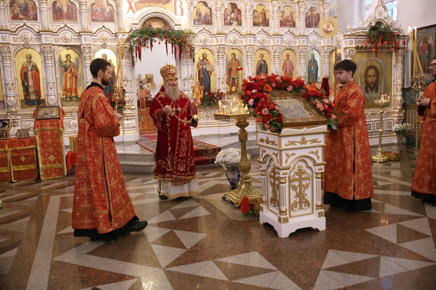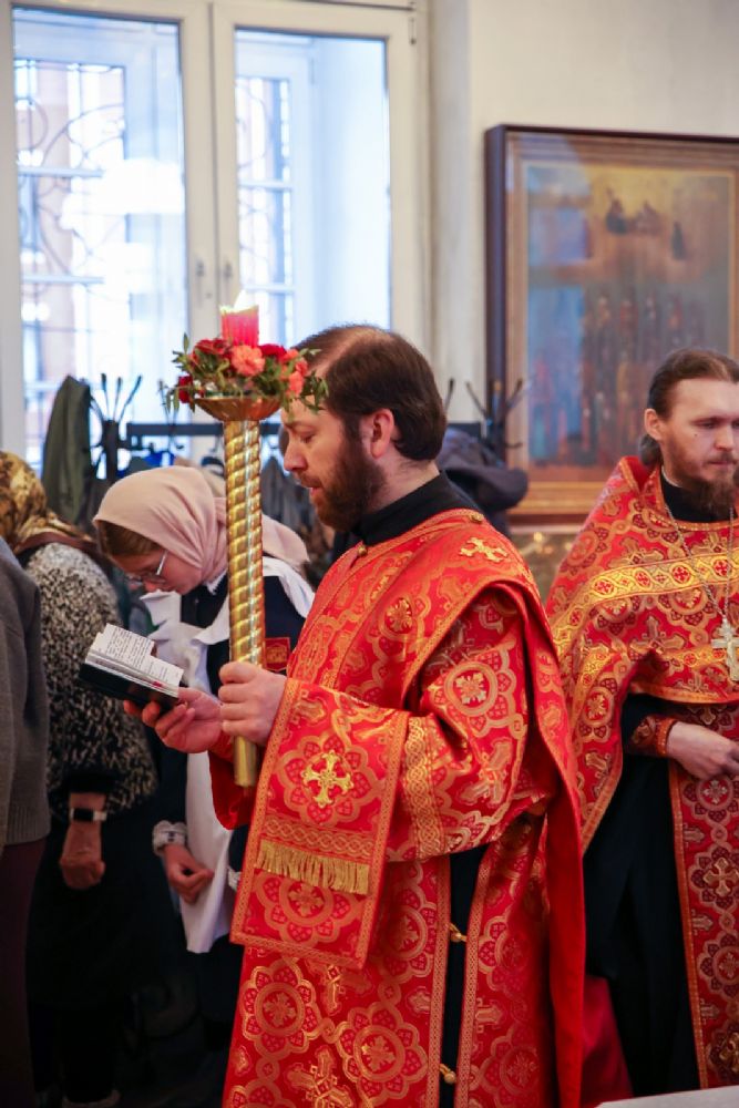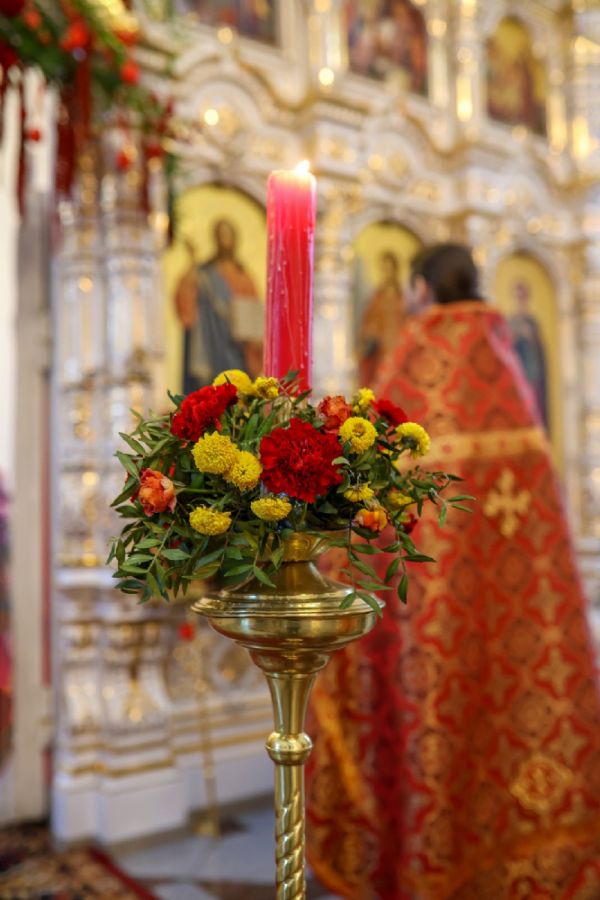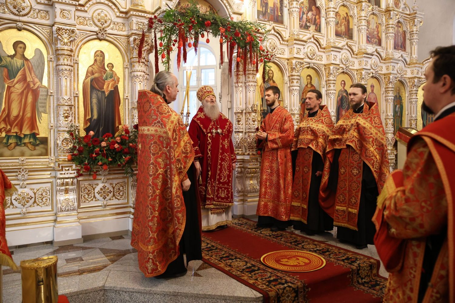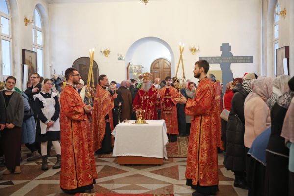 Архипастырю сослужили настоятель собора иерей Андрей Кочаков, клирики собора иерей Леонид Вылекжанин, иерей Димитрий Лукьянов и диакон Алексий Кузнецов, а также клирик Благовещенского кафедрального собора диакон Артемий Бобоч. Песнопения исполнял хор собора под управлением Алисы Вылегжаниной.