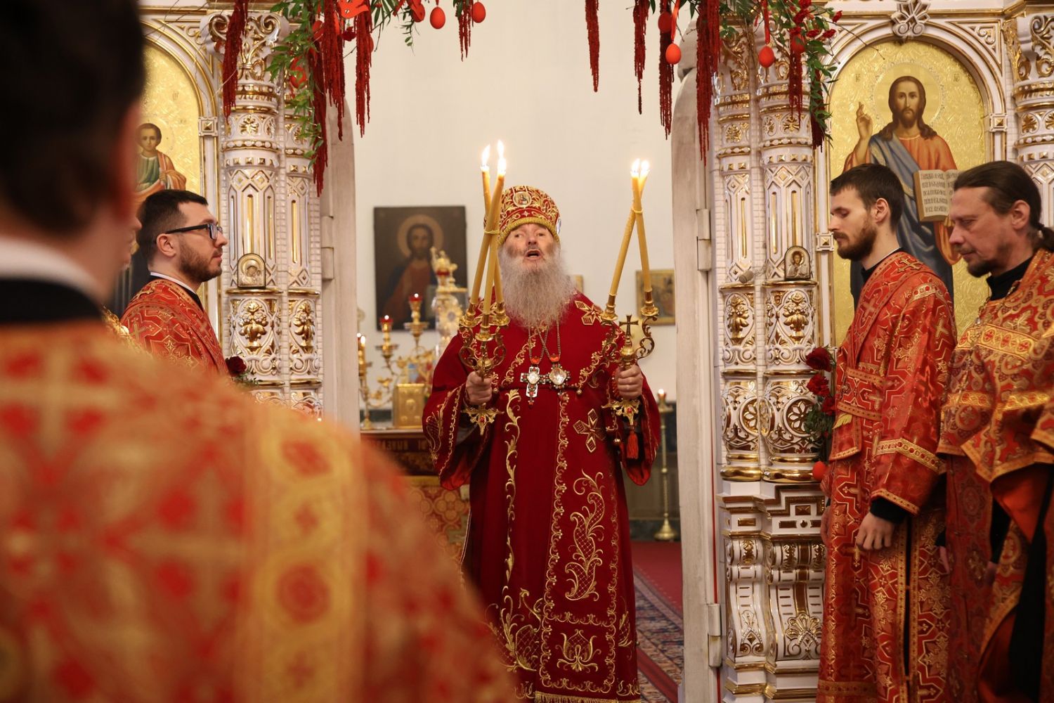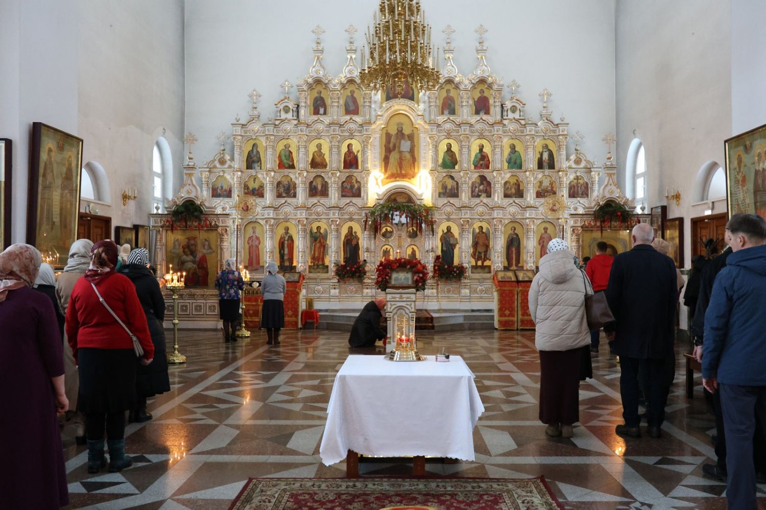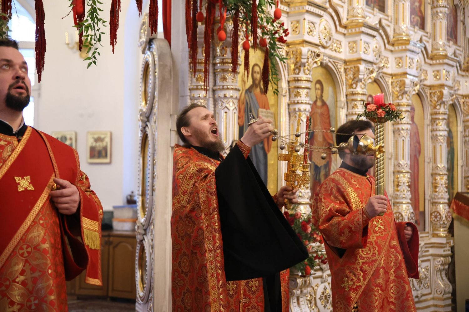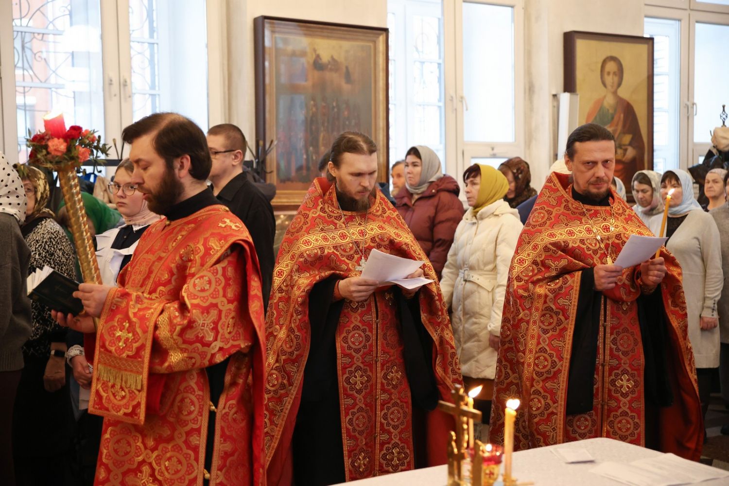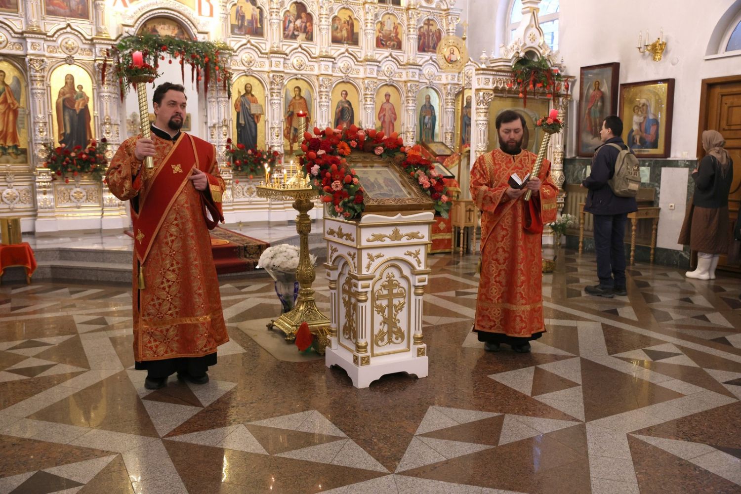 Архипастырю сослужили настоятель собора иерей Андрей Кочаков, клирики собора иерей Леонид Вылекжанин, иерей Димитрий Лукьянов и диакон Алексий Кузнецов, а также клирик Благовещенского кафедрального собора диакон Артемий Бобоч. Песнопения исполнял хор собора под управлением Алисы Вылегжаниной.