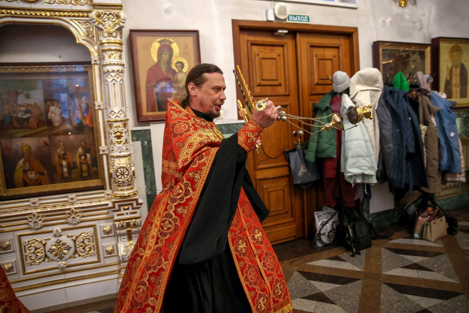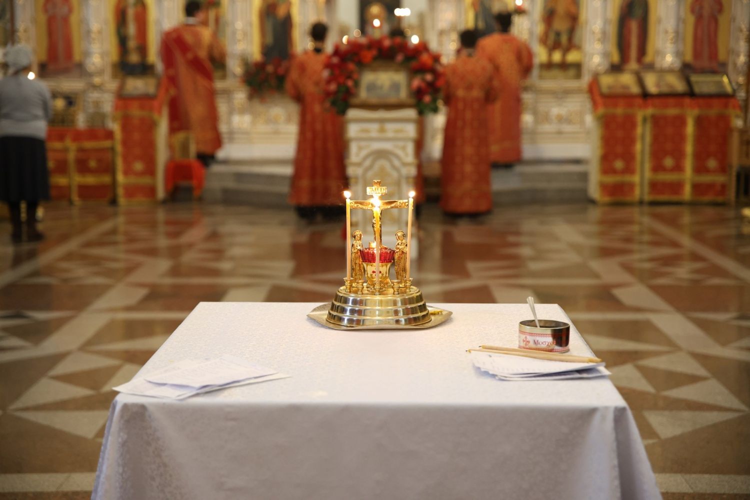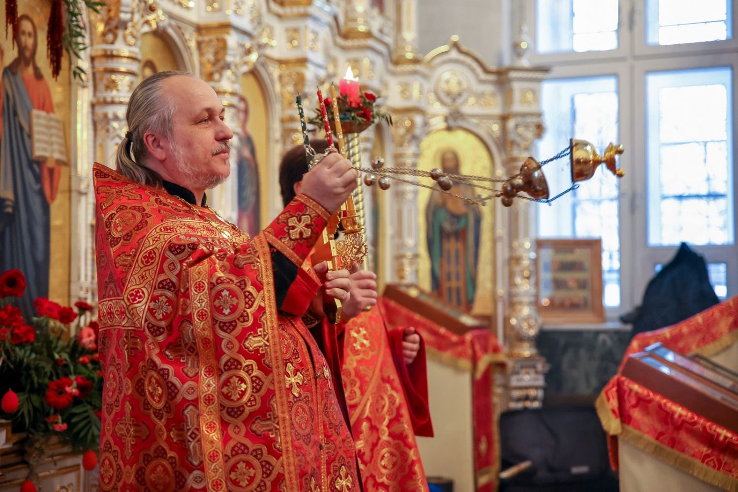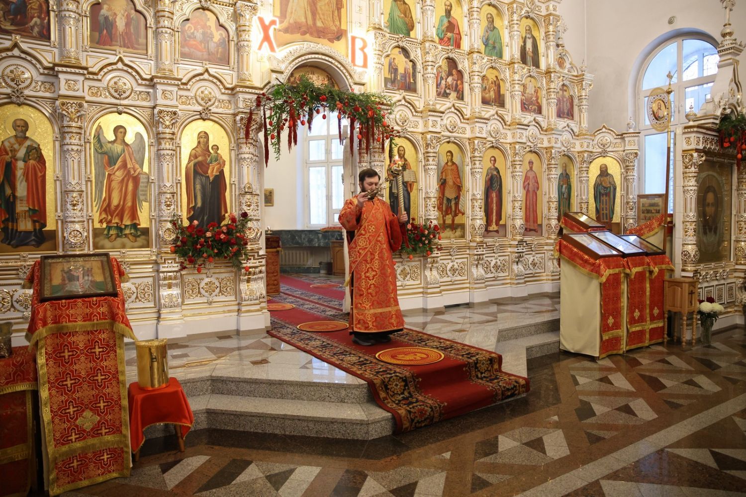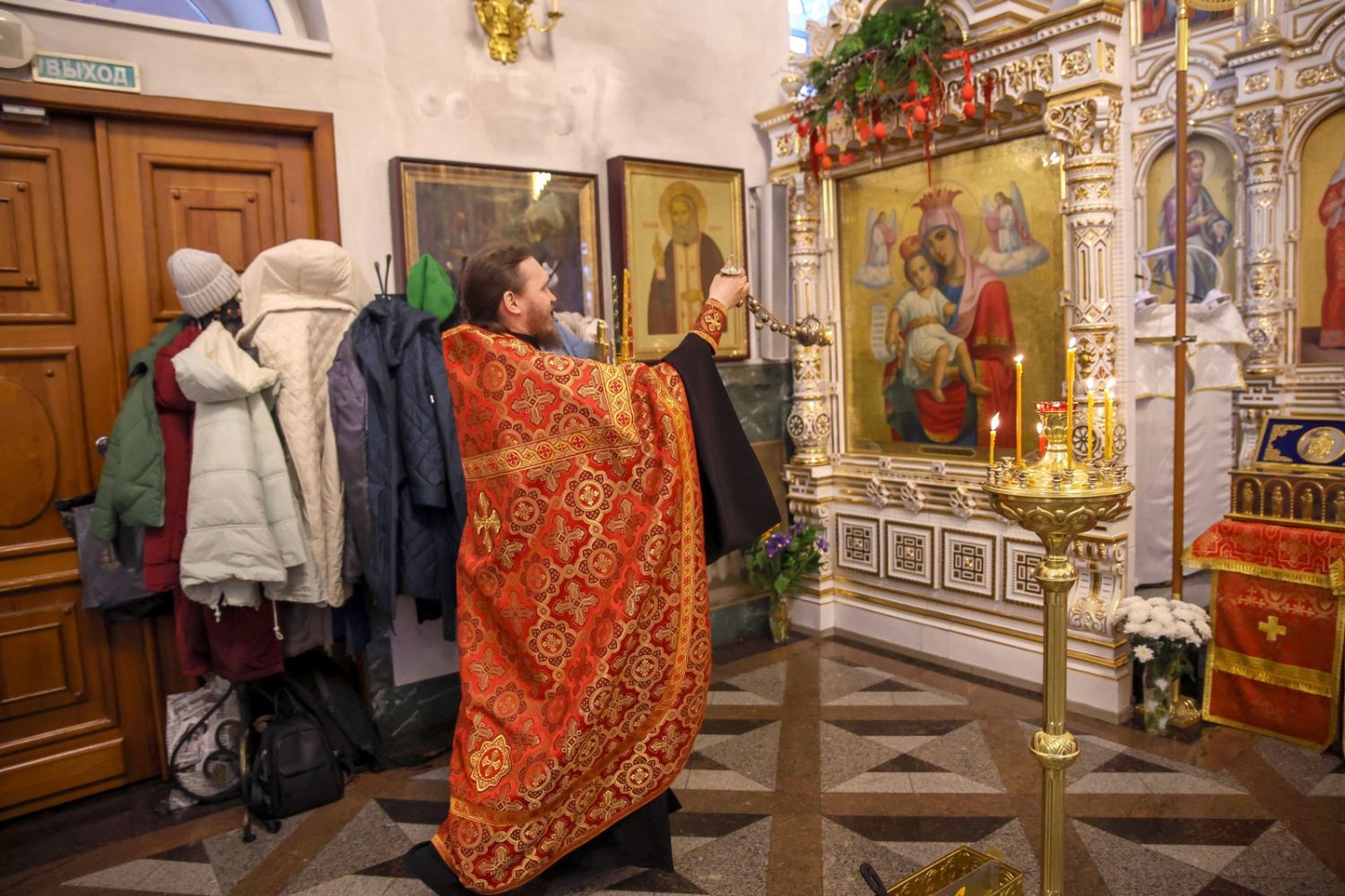 Архипастырю сослужили настоятель собора иерей Андрей Кочаков, клирики собора иерей Леонид Вылекжанин, иерей Димитрий Лукьянов и диакон Алексий Кузнецов, а также клирик Благовещенского кафедрального собора диакон Артемий Бобоч. Песнопения исполнял хор собора под управлением Алисы Вылегжаниной.