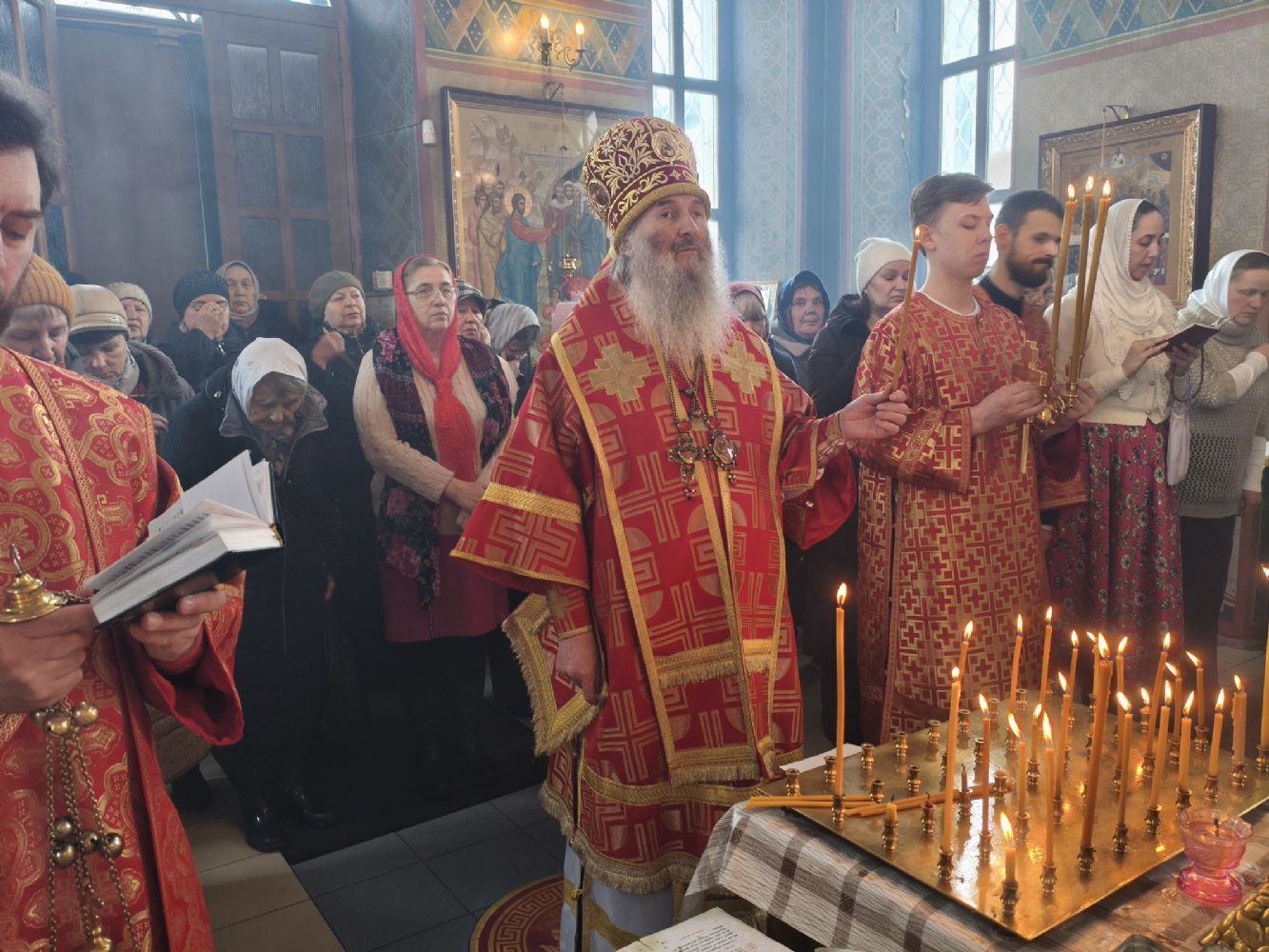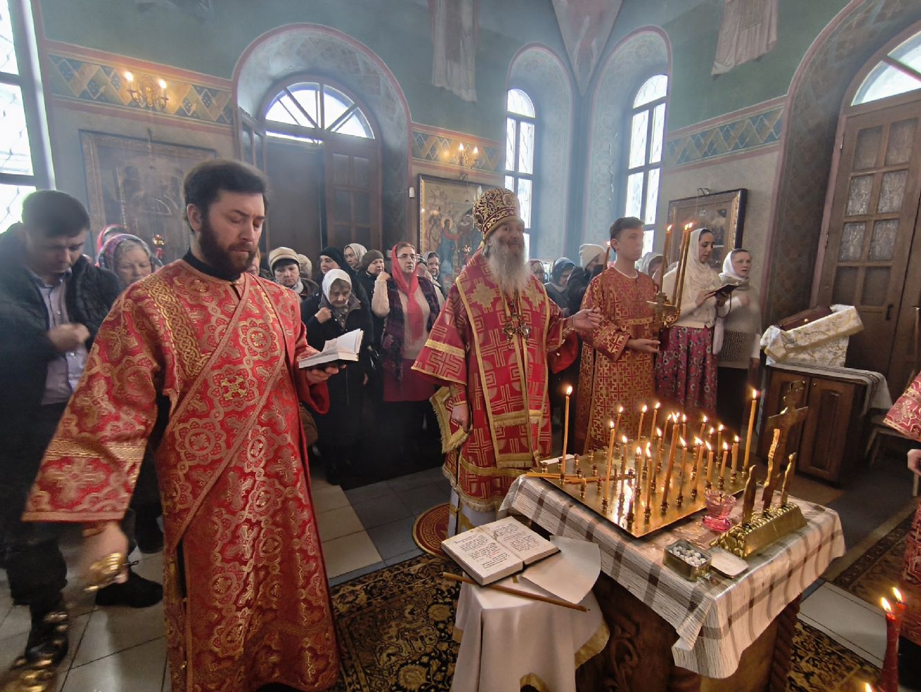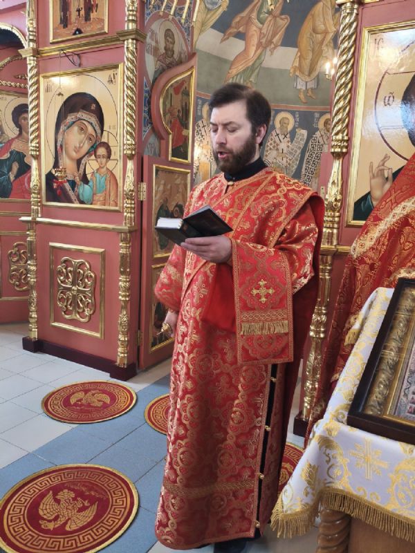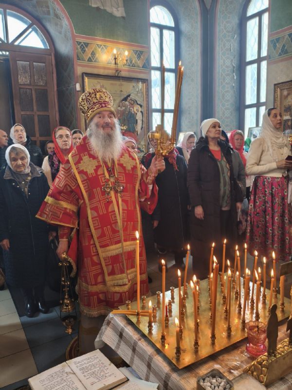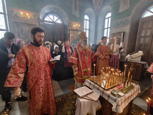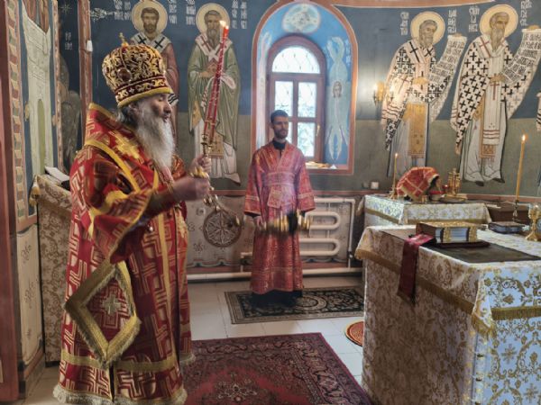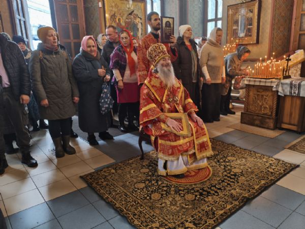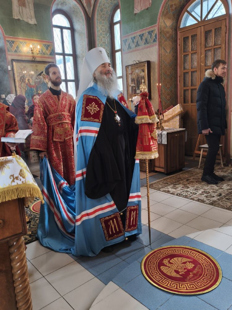 Владыке сослужили клирик храма Рождества Пресвятой Богородицы с. Семеновка иерей Сергий Асланов и клирик Благовещенского кафедрального собора диакон Артемий Бобоч. Песнопения исполнял хор «Благовест» под управлением Татьяны Черновой.