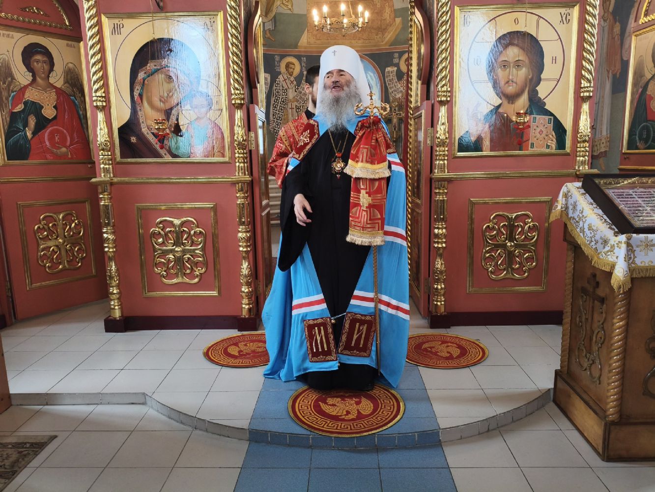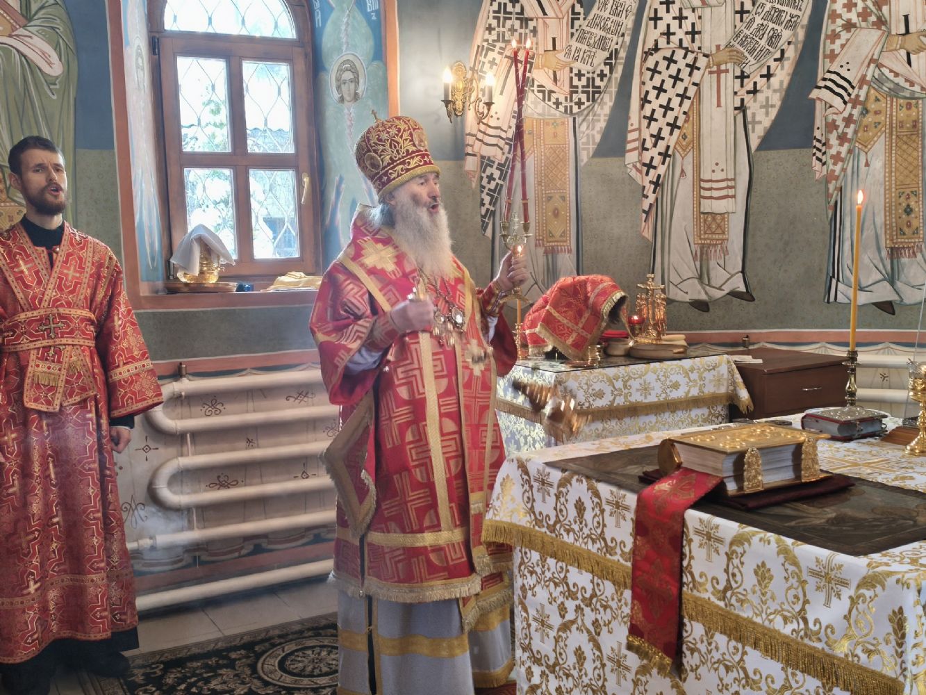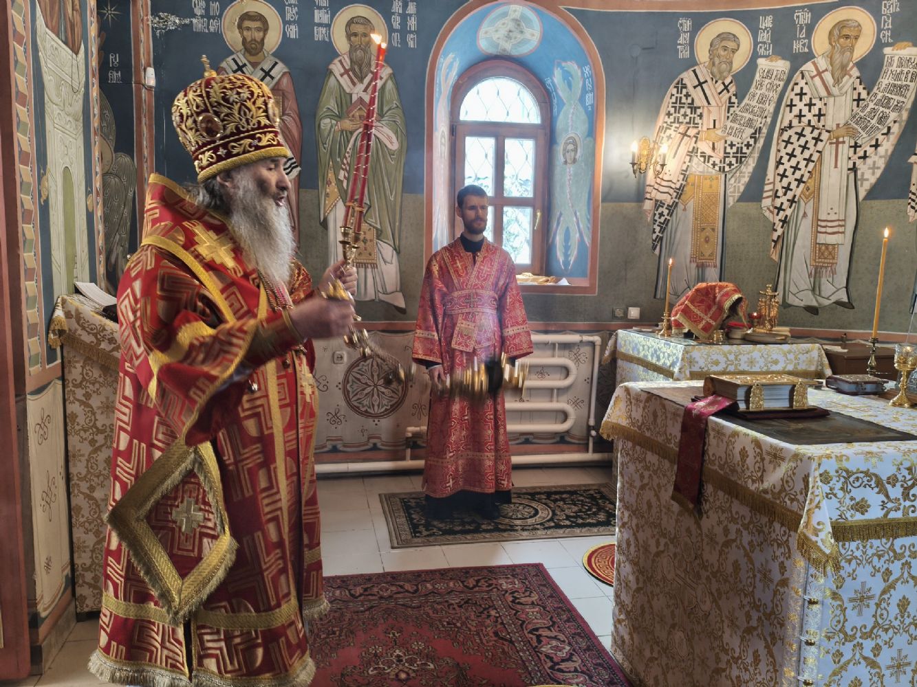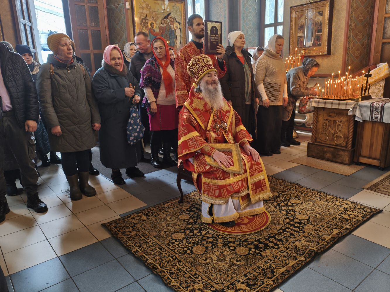 Владыке сослужили клирик храма Рождества Пресвятой Богородицы с. Семеновка иерей Сергий Асланов и клирик Благовещенского кафедрального собора диакон Артемий Бобоч. Песнопения исполнял хор «Благовест» под управлением Татьяны Черновой.
