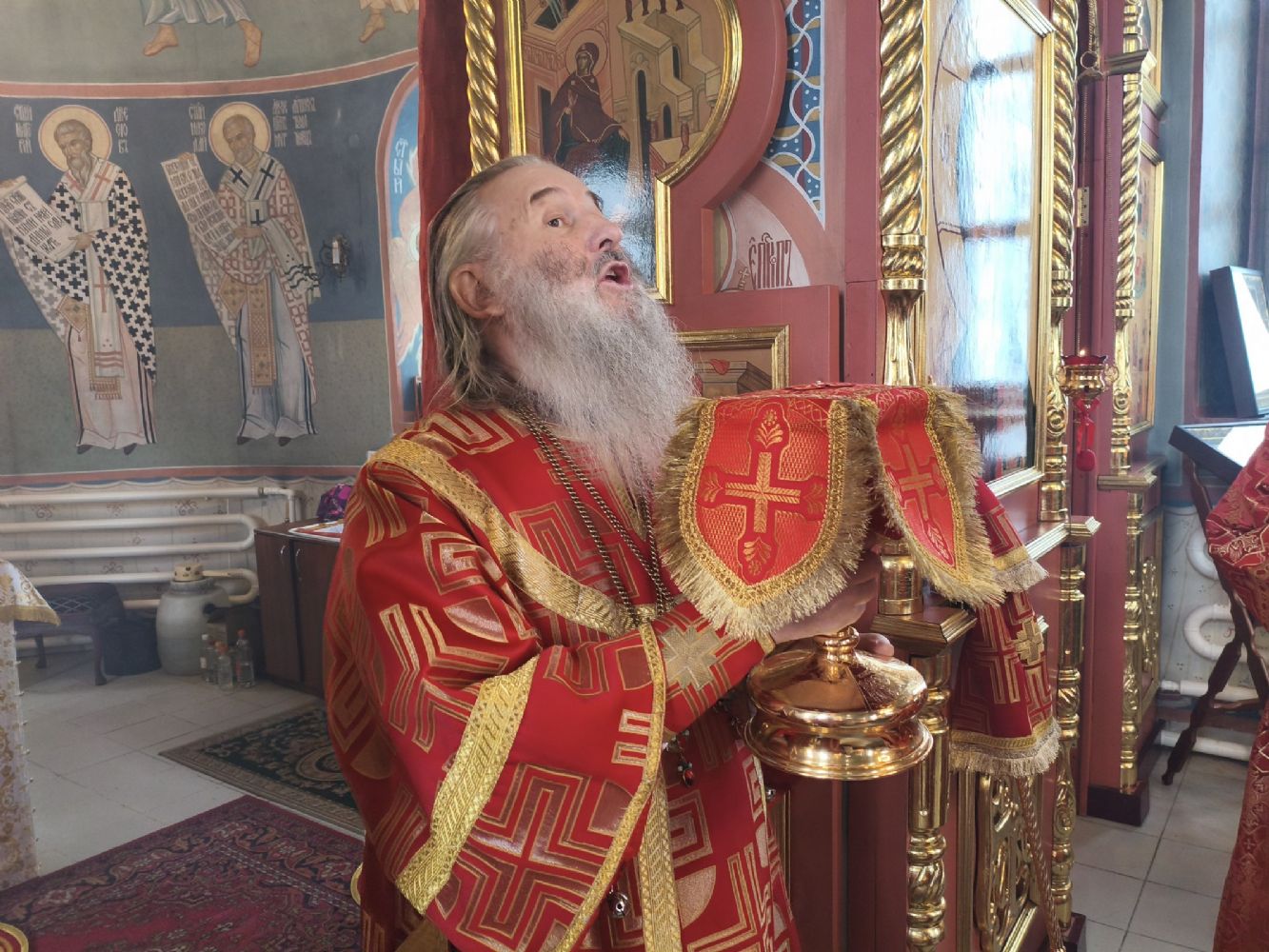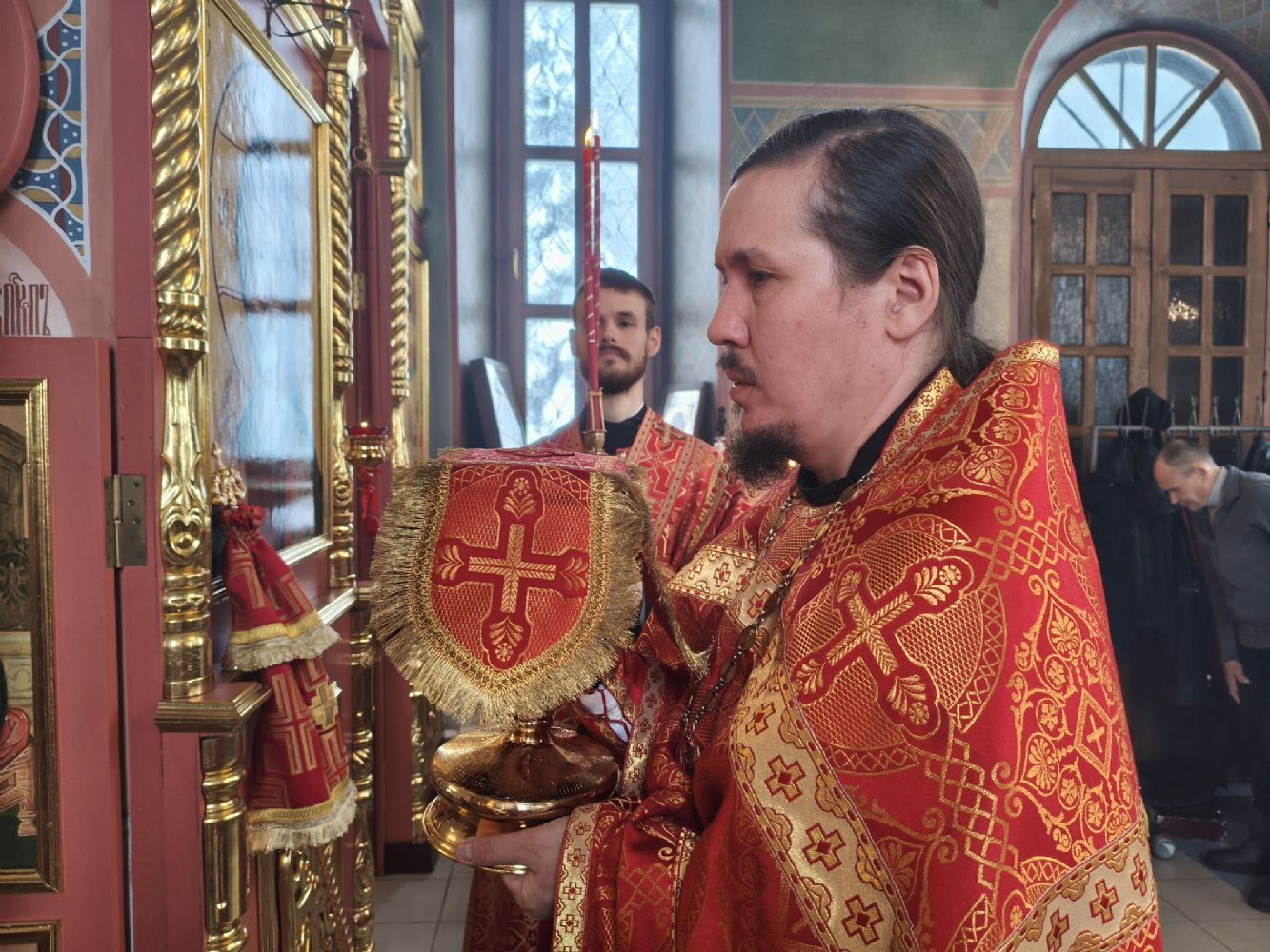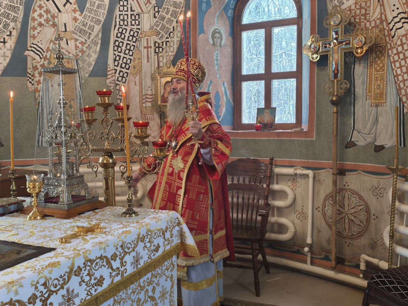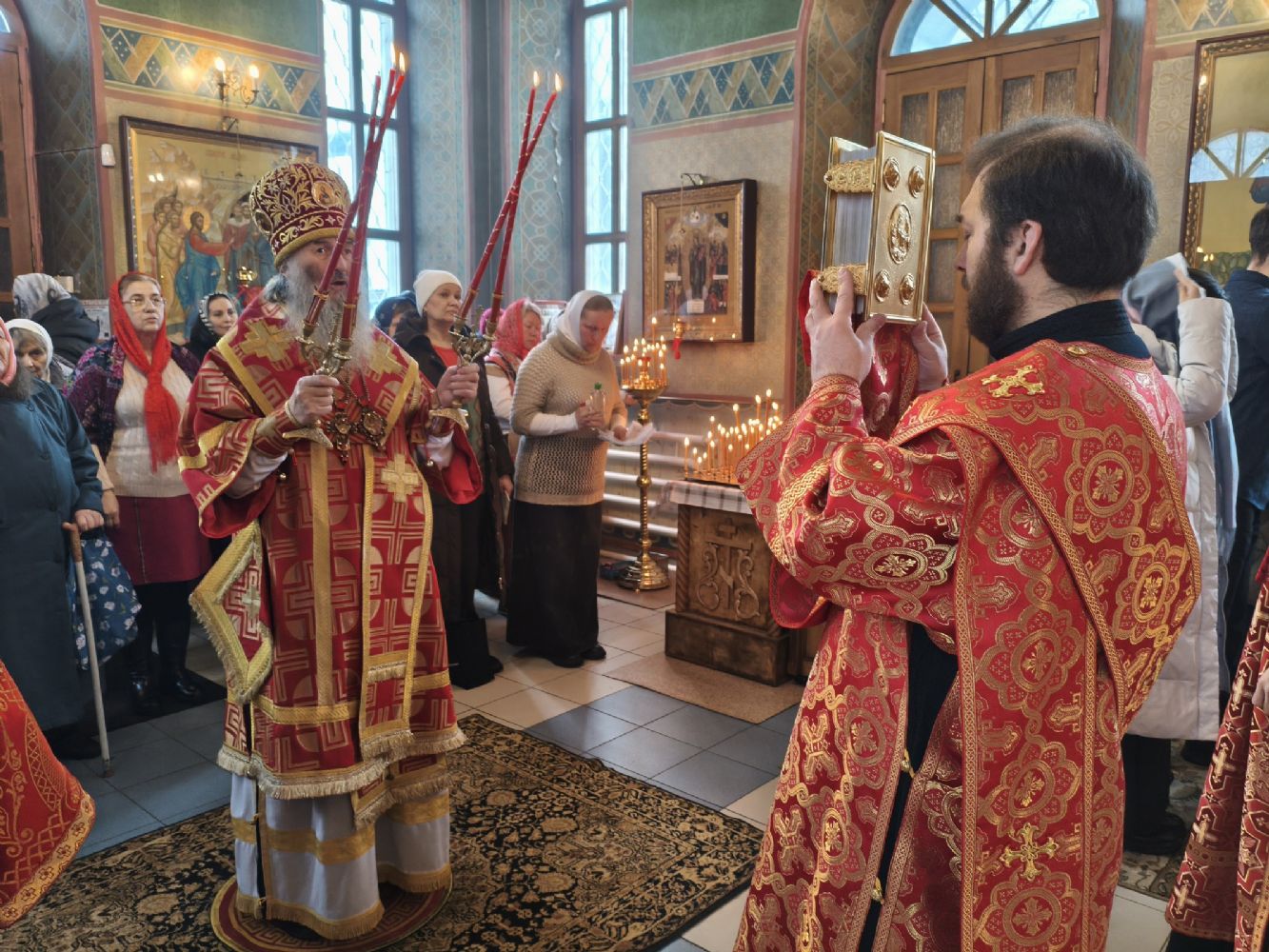 Владыке сослужили клирик храма Рождества Пресвятой Богородицы с. Семеновка иерей Сергий Асланов и клирик Благовещенского кафедрального собора диакон Артемий Бобоч. Песнопения исполнял хор «Благовест» под управлением Татьяны Черновой.