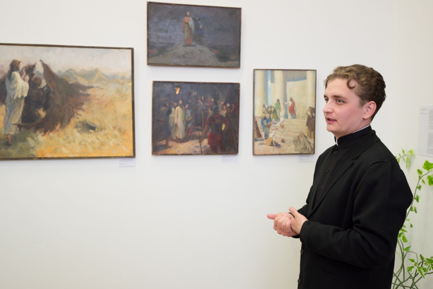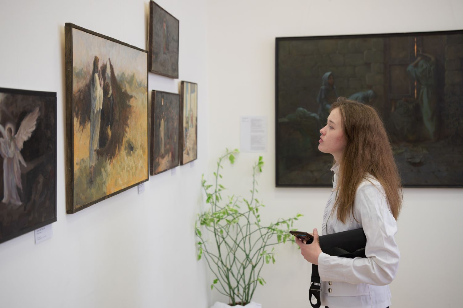 На выставке представлены работы студентов Йошкар-Олинского художественного училища – сюжеты из Ветхого и Нового Завета: от изгнания Адама и Евы из Эдемского сада до Благой вести.