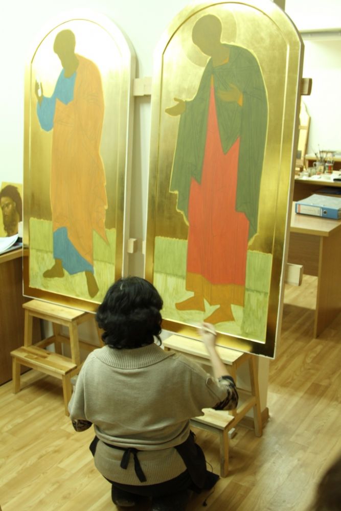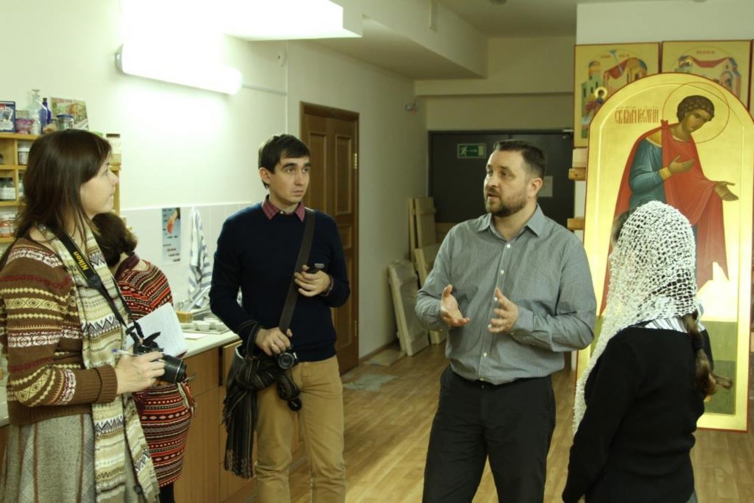 Интересной и познавательной стала и экскурсия по иконописной мастерской. Журналисты познакомились с работой иконописцев, стали свидетелями разных этапов написания икон.