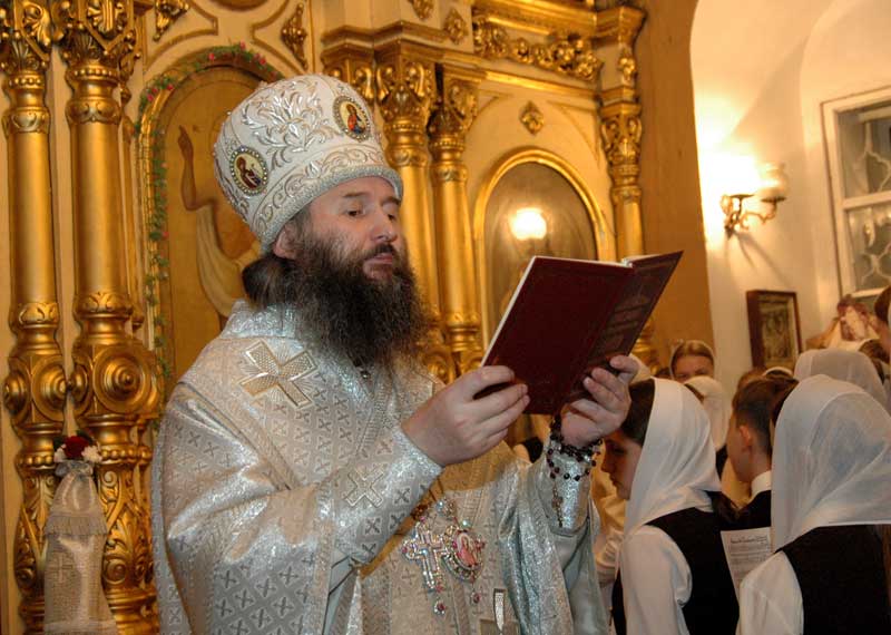 По древней традиции за Пасхальной заутреней Архиепископ Иоанн прочитал Огласительное слово святителя Иоанна Златоуста.
