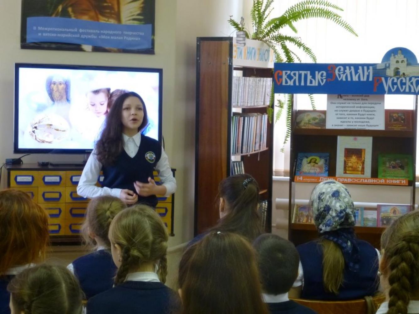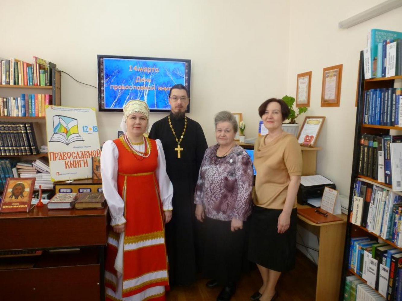 Память об этом историческом событии положила начало современному церковному празднику — Дню православной книги. В п. Медведево открытие недели, посвященной православной книжной культуре, состоялось 12 марта в районной библиотеке. С приветственным словом к учащимся пятых классов Медведевской гимназии обратился настоятель храма Державной иконы Божией Матери священник Алексей Михайлов.