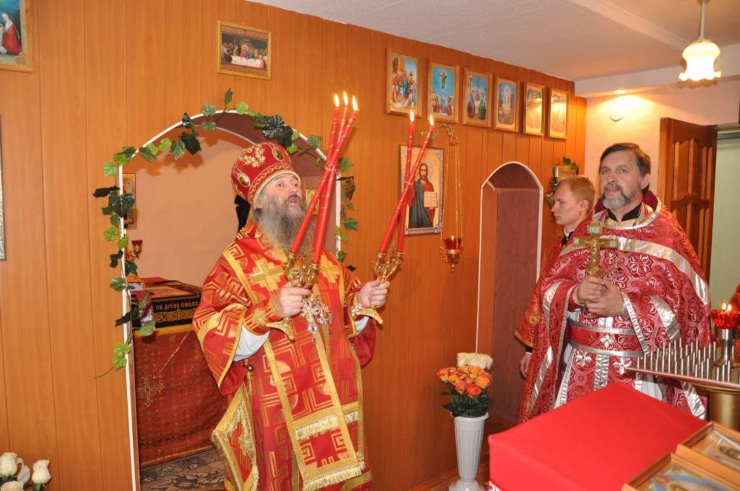 За Литургией вместе с Владыкой служили настоятель храма иерей Георгий Колотов и настоятель храма преподобного Серафима Саровского г. Йошкар-Олы протоиерей Александр Бачурин.