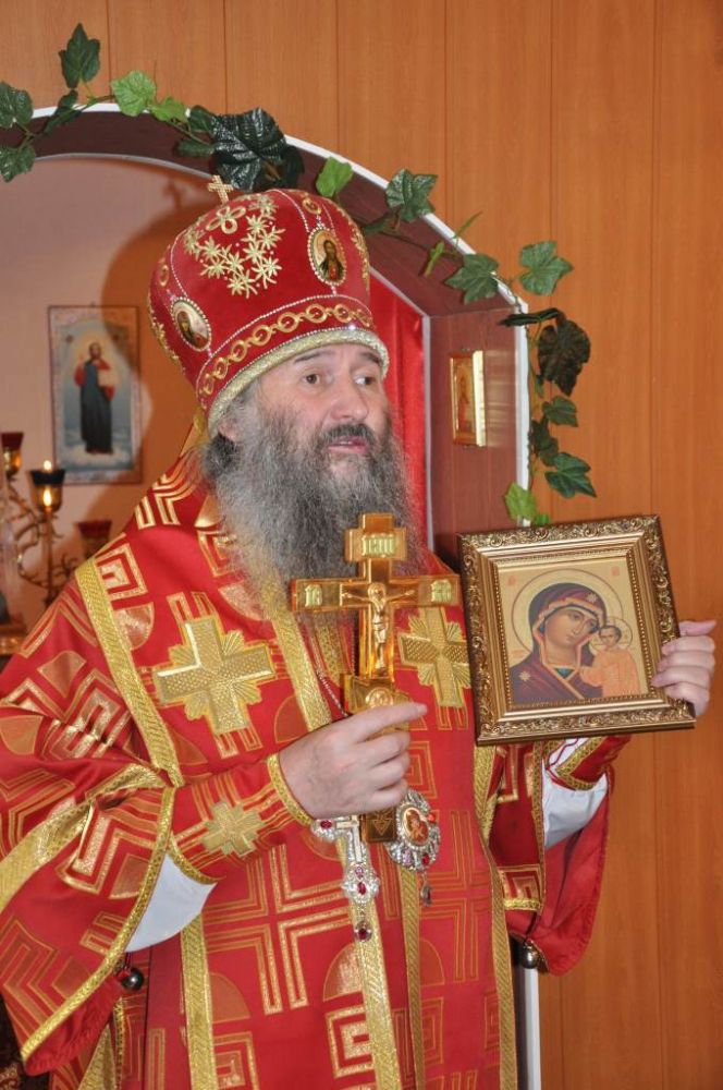 В своей проповеди Владыка поздравил всех с главным праздником всего воинства, с днем святого великомученика Георгия Победоносца, а настоятеля храма — отца Георгия с днем небесного Покровителя и подарил ему икону Пресвятой Богородицы.