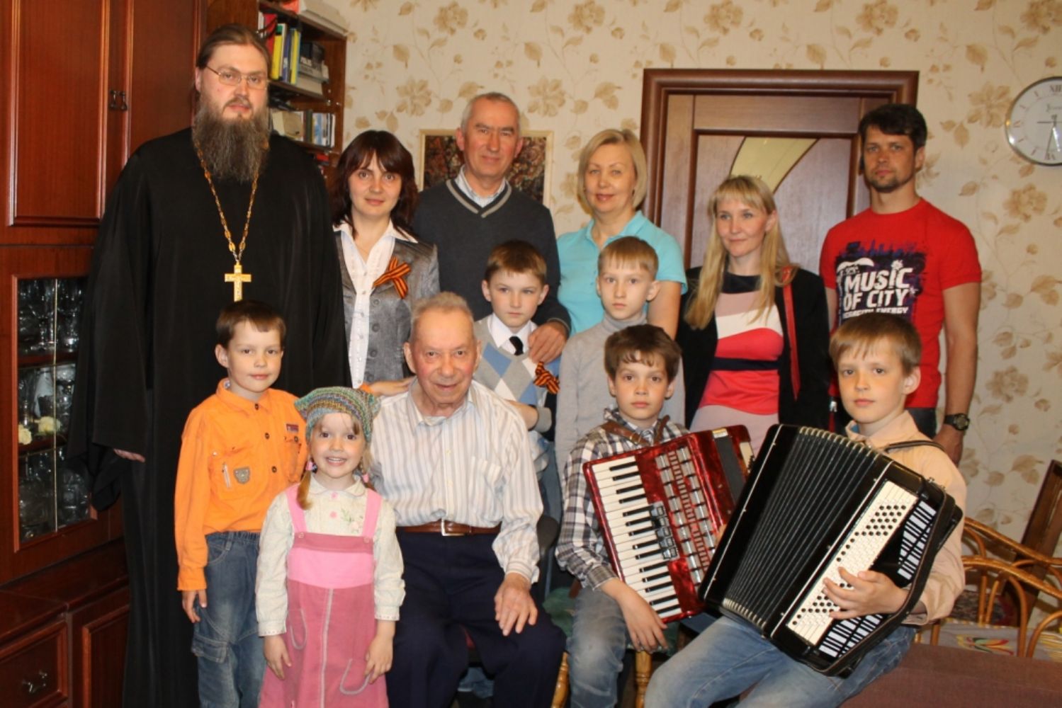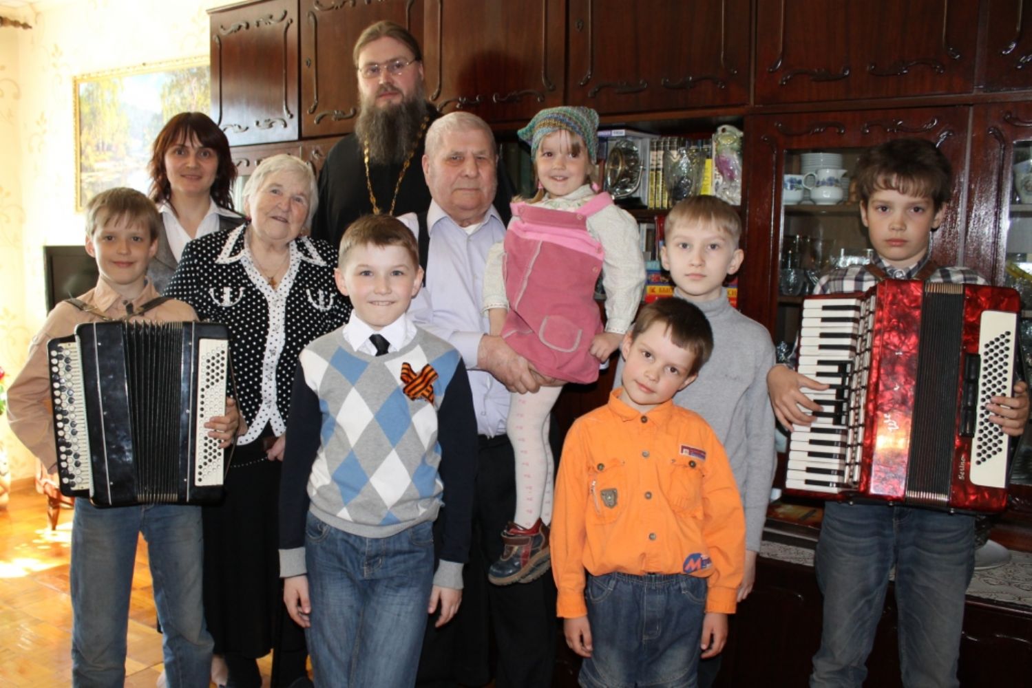 Несмотря на тяжёлые воспоминания, бабушки и дедушки охотно делились своими рассказами о войне, о событиях там происходящих, читали стихи поэтов и своего авторства. Дети затаив дыхание, задумчиво слушали, и, казалось, проживали вместе с рассказчиком те события. В завершении поздравлений каждому ветерану была подарена икона прп. Серафима Саровского.