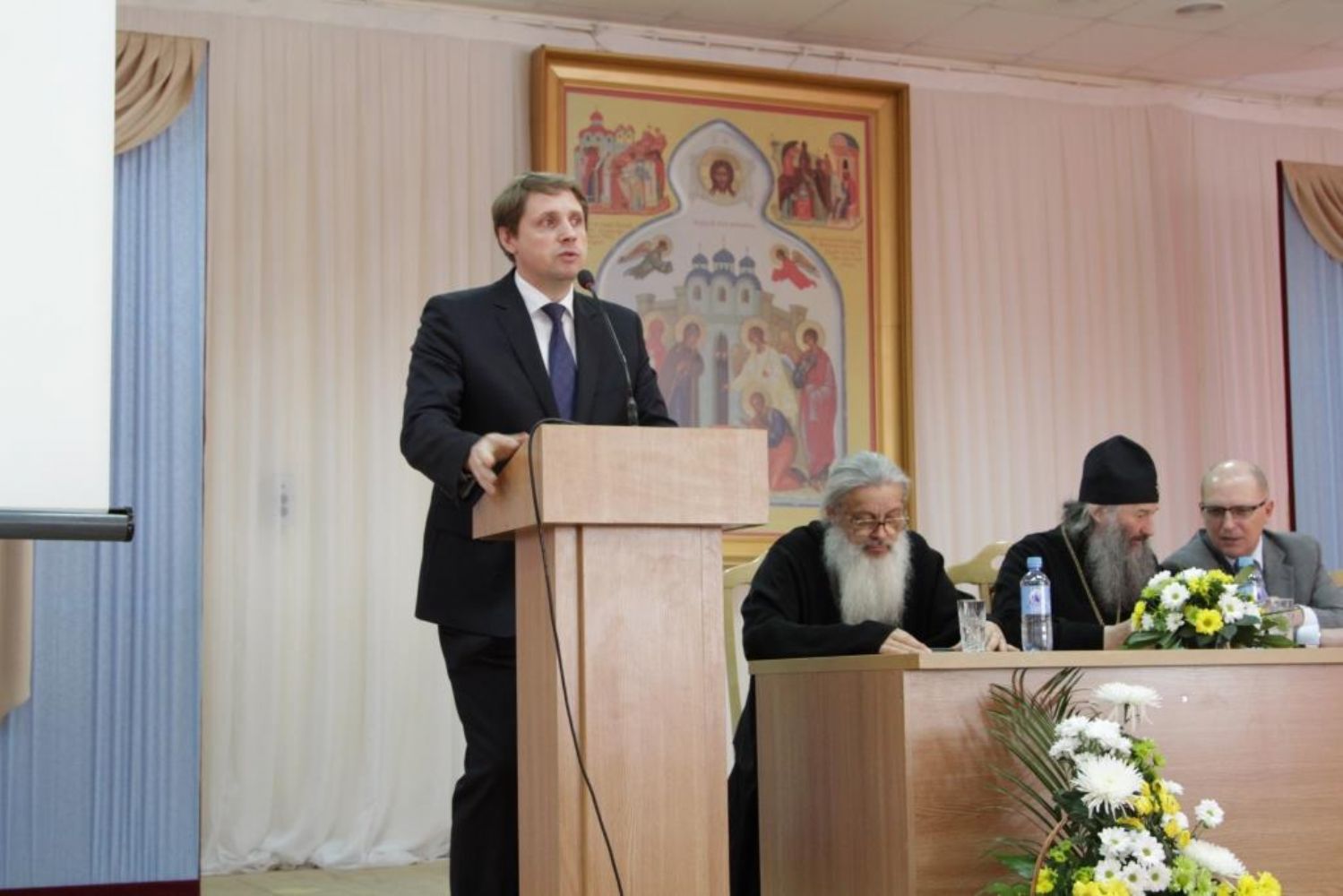 Мероприятие началось в Православном центре в 10.00. После приветственного слова архиепископа Йошкар-Олинского и Марийского Иоанна выступил М.З. Васютин, Министр культуры, печати и по делам национальностей Республики Марий Эл.