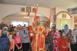 В конце литургии был отслужен праздничный молебен и крестный ход вокруг храма. После службы Владыка поздравил всех с праздником, и сказал, что: «…в эти святые пасхальные дни Господь шествует с нами как с Эммаускими путниками, является нам в храме Божием, как он являлся первым апостолам, ученикам и первым христианам. Господь всегда пребывает с нами, Он является к нам за одно только, что мы пришли к Нему и Он воцаряется в сердце нашем как на престоле божественном и радость наступает в нашем сердце, что в остальные дни Господь сподобляет нас той же несказанной радости в течение всего года. Вот какое великое несказанное богатство имеем мы, чада Святой православной Церкви, не только залог вечной жизни с Богом, но всегдашнее пребывание в Нем и с Ним. Мы должны беречь себя от соблазнов и искушений, пребывать в молитве, чтобы Господь никогда не оставлял всех нас. Пусть радость о светоносном воскресении Христовом наполняет наши сердца, мы же своими добрыми делами да прославим Творца всяческих Бога и поделимся этой радостью о воскресшем Христе со всеми, кто окружает нас и в молитве за них принесем хвалу Богу, ожидая от Него великие и богатые милости на весь народ Божий» — добавил Владыка.