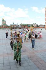 В этот день праздничные богослужения прошли во всех храмах Йошкар-Олы. А в Воскресенском соборе после Божественной литургии состоялся крестный ход к часовне святых благоверных князя Петра и княгини Февронии, расположенной на Патриаршей площади. В часовне был совершен молебен святым покровителям семьи.