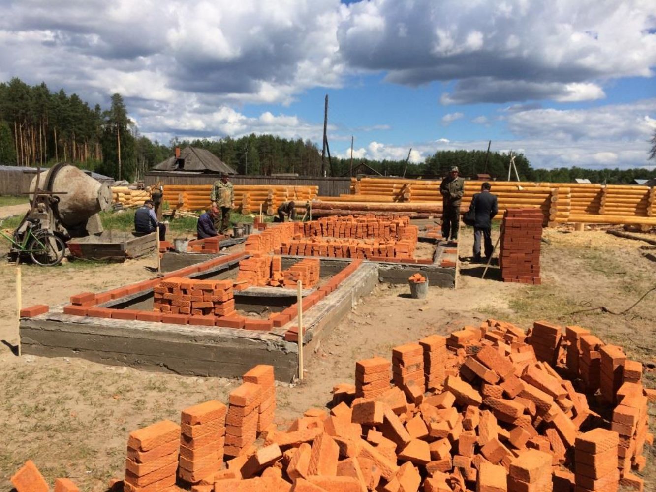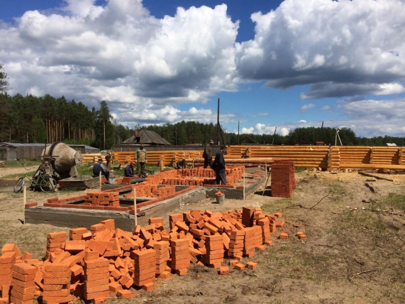 На святое дело нашлись и благотворители. Например, жители Йошкар-Олы бесплатно сделали проект храма. А три Михаила: два предпринимателя из Килемар и один из Озерной, не сговариваясь, пожертвовали по 80 кубометров леса. И землеустройство так же было выполнено специалистом бесплатно. В настоящий момент идет сбор пожертвований, а бригада плотников уже срубила четырехгранный и шестигранный срубы. Усилиями жителей поселка был залит фундамент под храм и выложена цокольная часть.