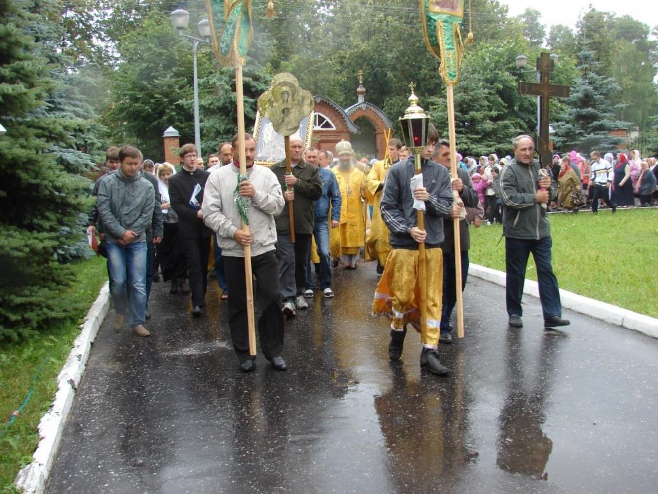 По деревням Поляна и Горный Шумец, по улицам Максима Горького и Лермонтова п. Юрино был совершен крестный ход, который возглавлял настоятель храма протоиерей Николай Барсуков, окропляя святой водой жителей, улицы и дома. Прихожане с благоговением и беспрестанным славословием Пресвятой Богородицы бережно несли святую икону.