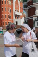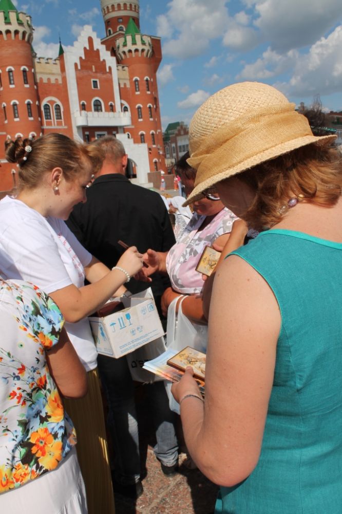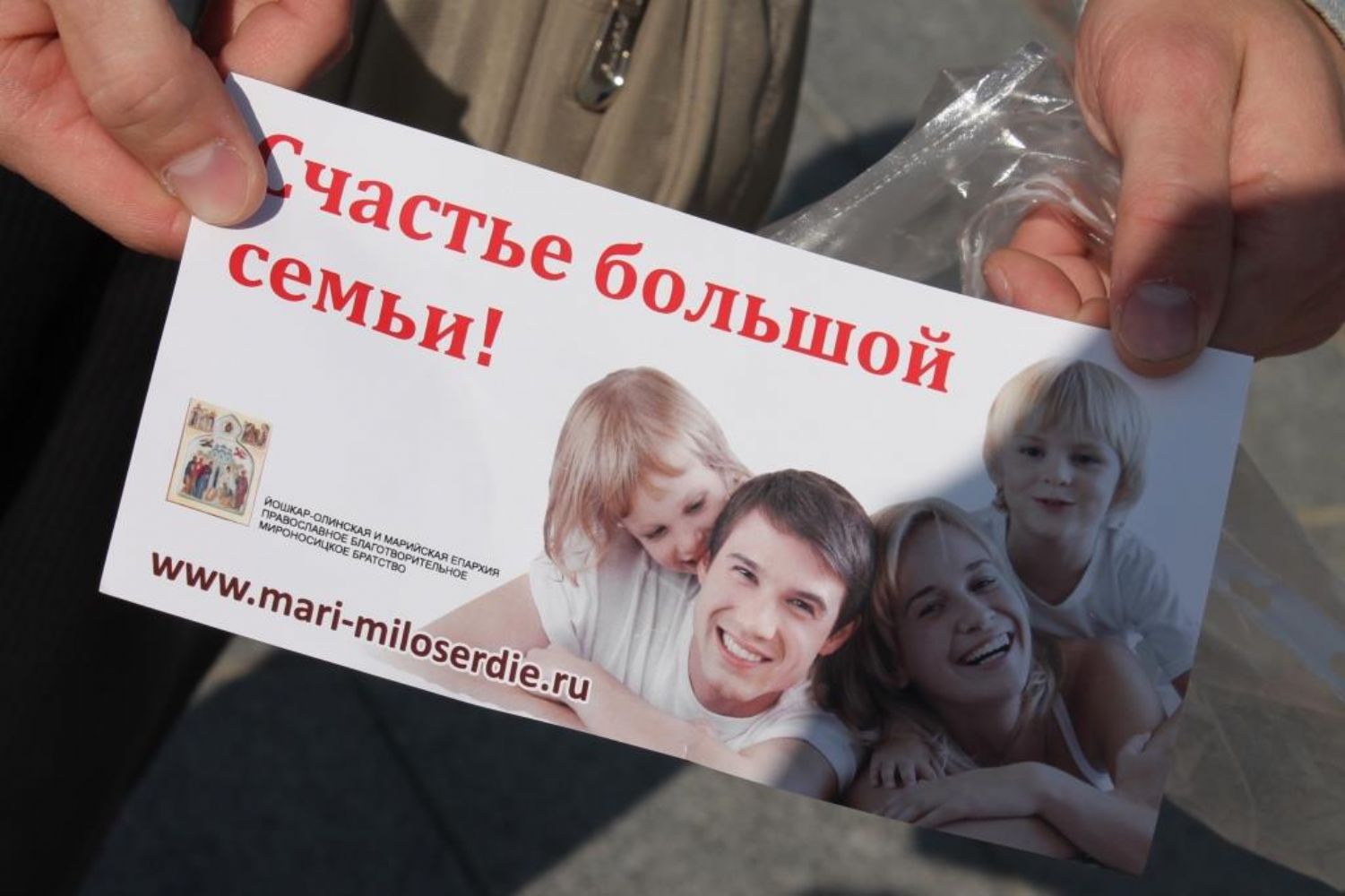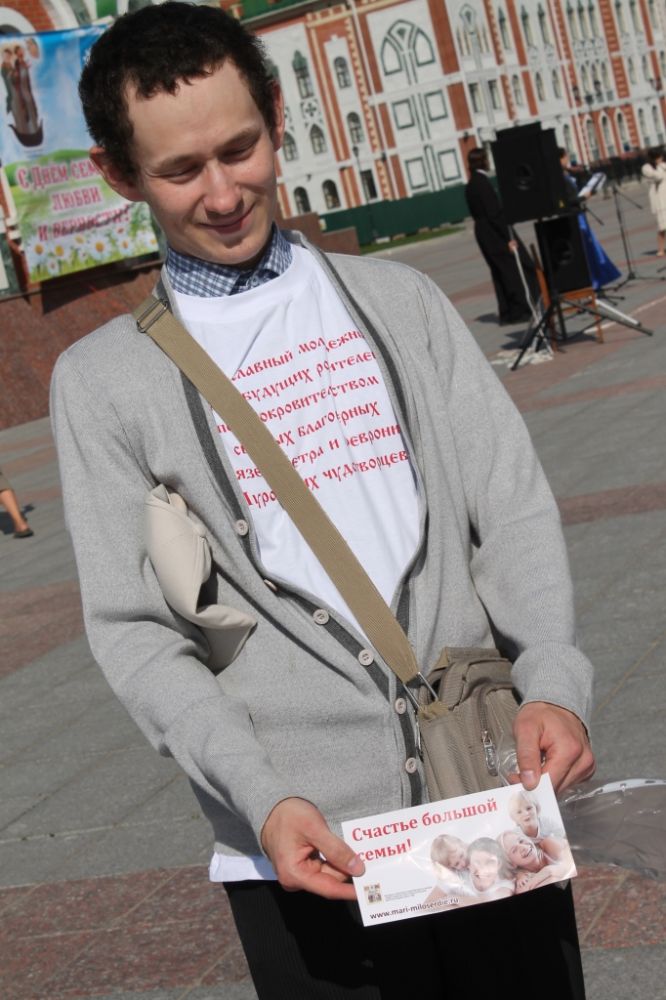 Отдел социального служения и церковной благотворительности Йошкар-Олинской и Марийской епархии также принял деятельное участие в празднике. Сотрудники отдела и добровольцы – члены Клуба будущих родителей во имя святых благоверных князей Петра и Февронии, Муромских чудотворцев поздравляли всех присутствующих и дарили открытки «С днем семьи, любви и верности», а также листовки «Счастье большой семьи». Попутно люди узнавали о сайте отдела социального служения, адрес которого был указан на раздававшихся листовках (www.mari-miloserdie.ru).