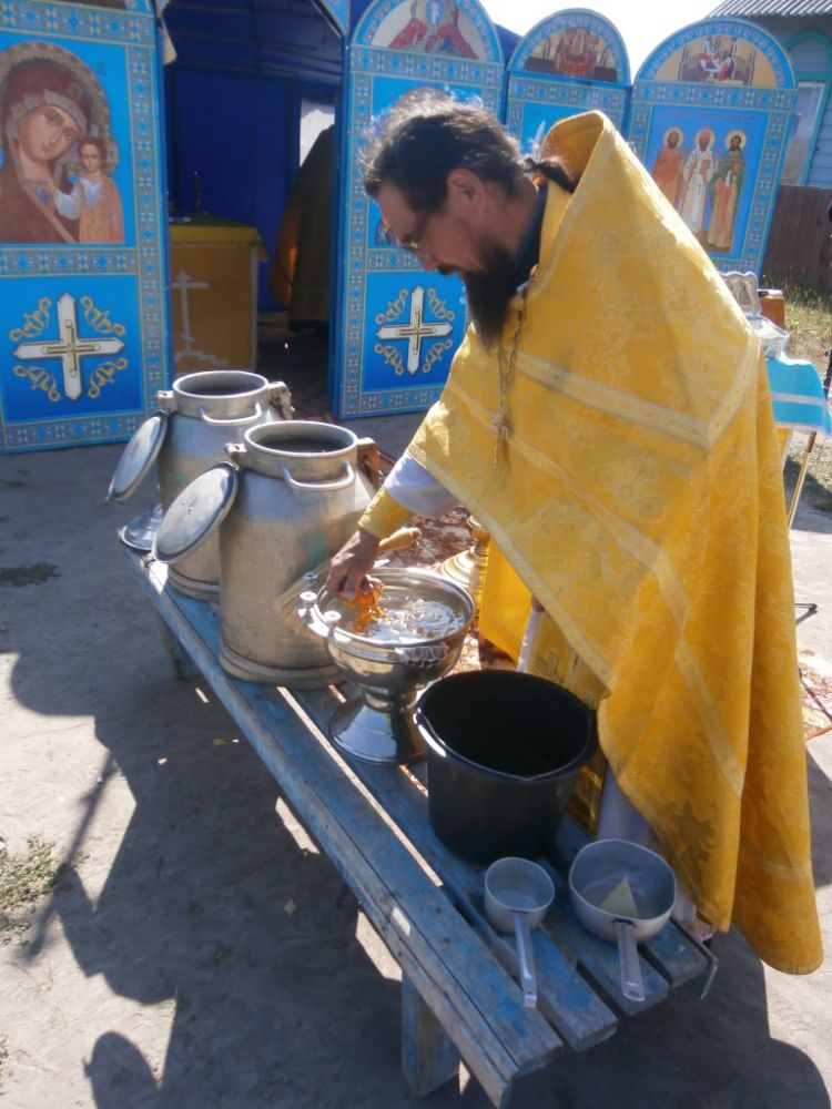 По окончании Литургии был совершен водосвятный молебен, после чего все верующие обошли с пением и окроплением святой водой бывший храм в честь Казанской иконы Божией Матери, в котором в настоящее время располагается сельский клуб. В конце молебного пения в здании оскверненного храма были пропеты величания Богородице, святителю Николаю Чудотворцу и священномученику Анатолию Ивановскому, служившему в этом храме до своей мученической кончины в годы гонений на веру.