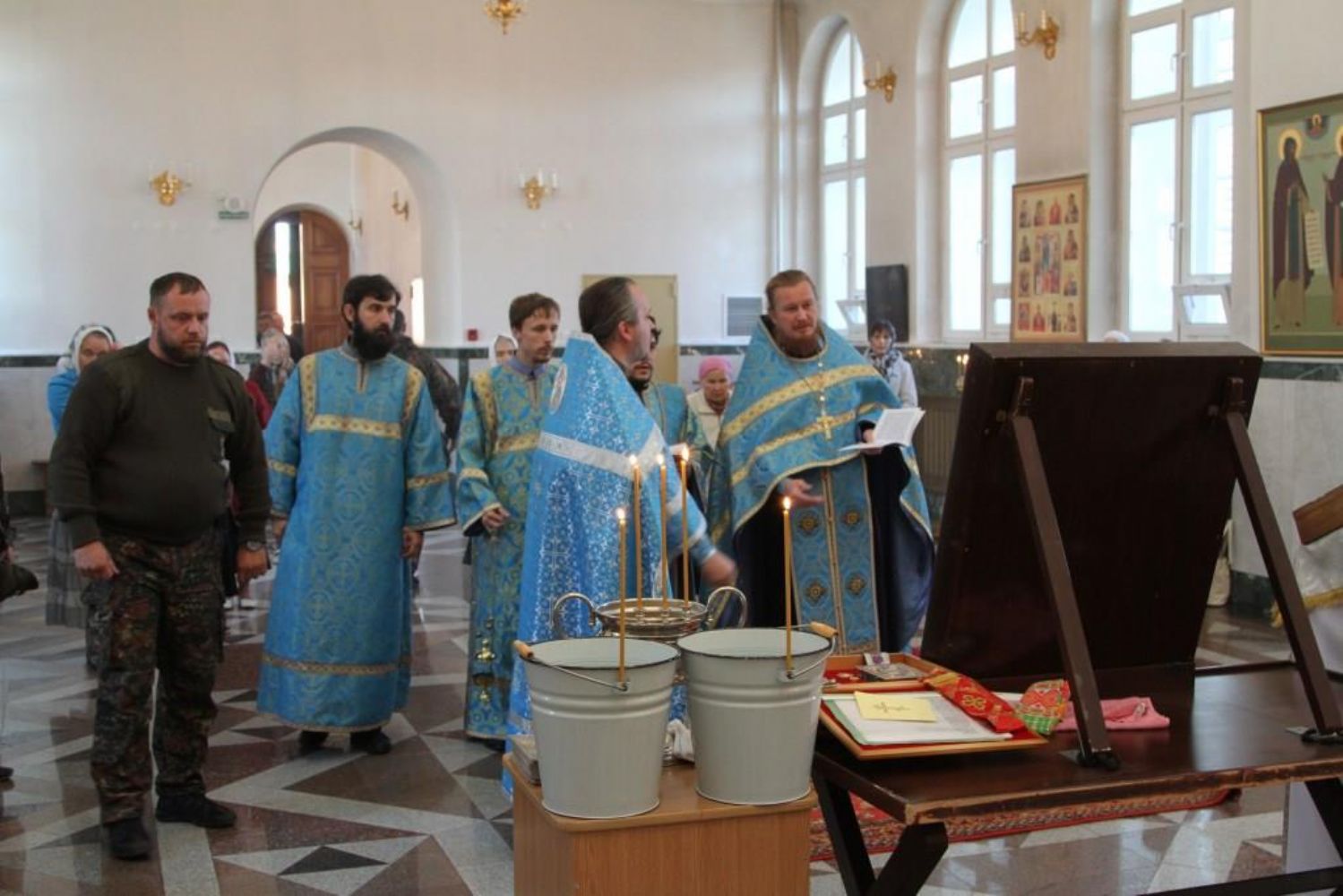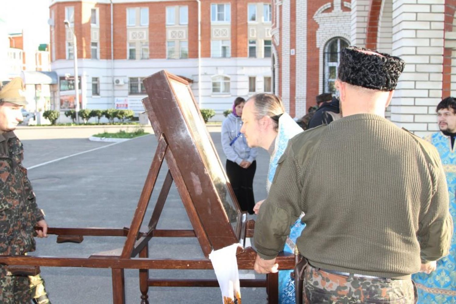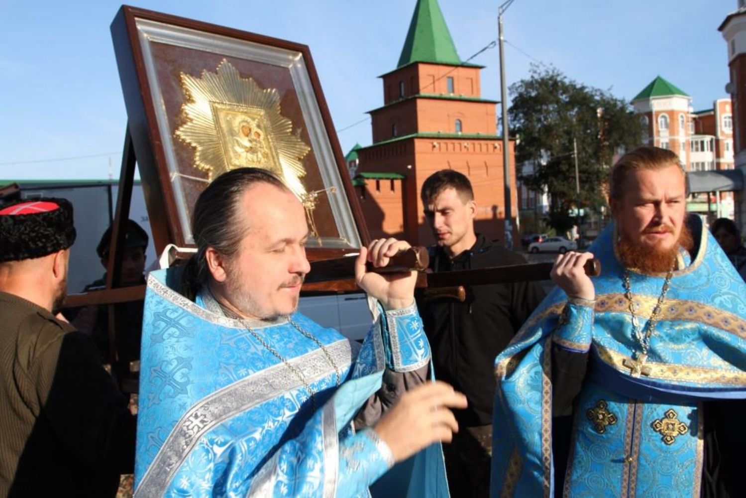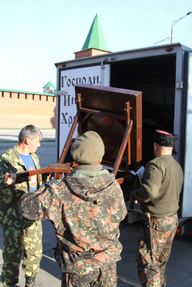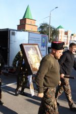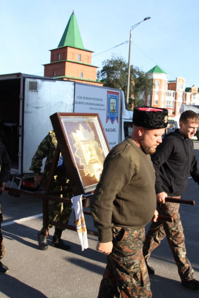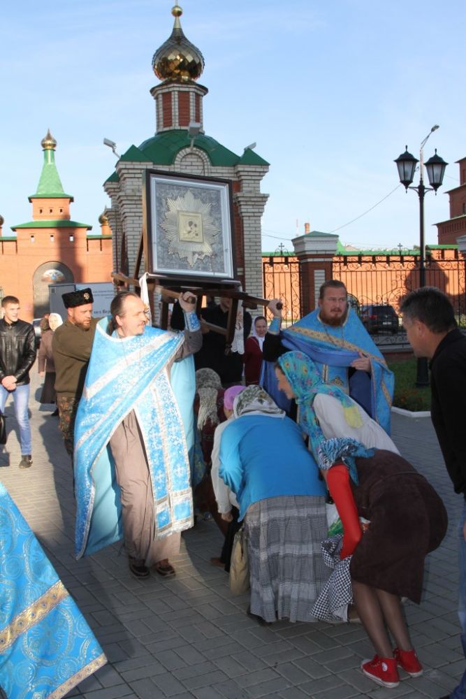 В сопровождении казаков из станицы Красноглинской Самарской области икона прибыла в наш город на три дня. Все это время она будет пребывать в Воскресенском соборе Йошкар-Олы, где накануне чудотворная икона была встречена местным священством и прихожанами. Во время встречи был отслужен водосвятный молебен с акафистом иконе Божией Матери «Избавительница от бед».