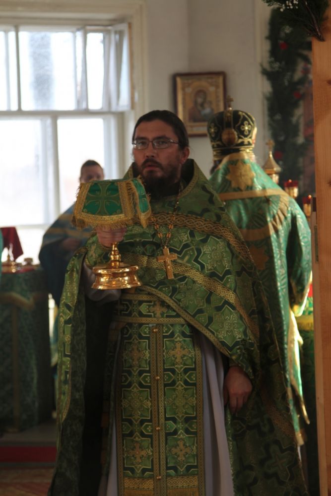 Сослужили Владыке настоятель храма иерей Сергий Бажанов, благочинный Северного церковного округа протоирей Вячеслав Ершов, благочинный Пригородного округа иерей Александр Коваль, клирик храма праведного Иоанна Кронштадтского г. Волжска иерей Матфей Сапаев, настоятель храма Покрова Пресвятой Богородицы с. Мари-Сола, протоиерей Сергий Сильдушкин, настоятель храма Воздвижения Креста Господня с. Кукнур протоиерей Николай Суринов.