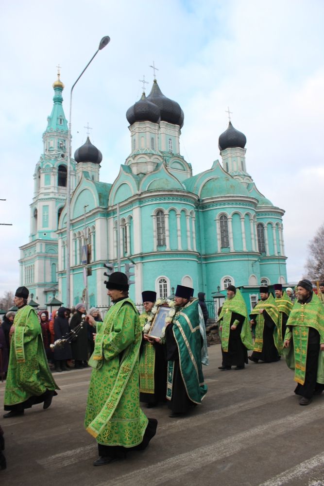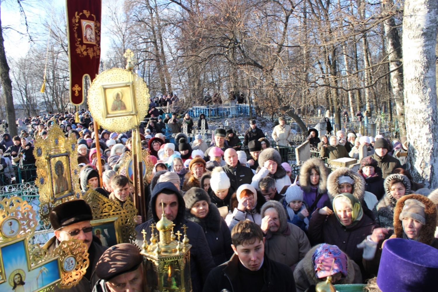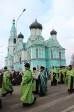 После Литургии духовенство и прихожане Троицкого и Успенского соборов проследовали крестным ходом по исторической части города до старого городского кладбища, к могилке преподобного Матфея.
