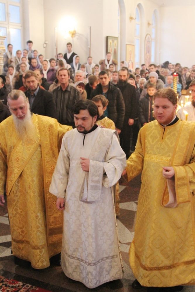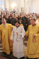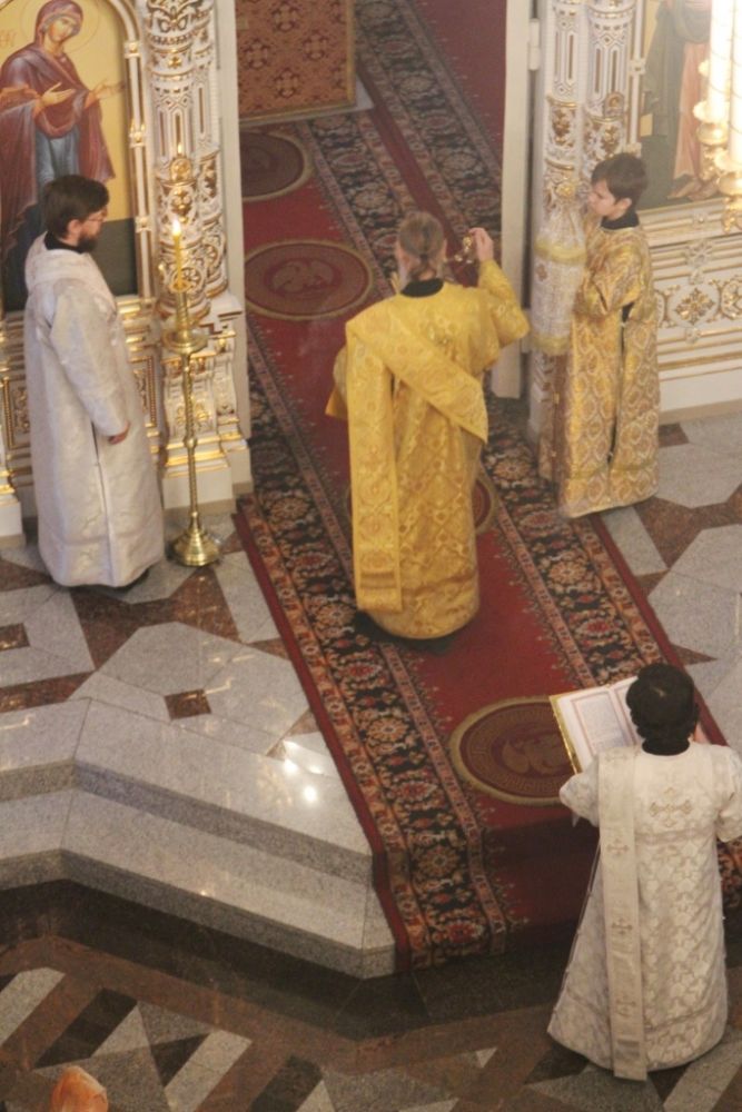 За литургией Владыке сослужили настоятель собора протоиерей Сергий Поглазов и гости из Казанской митрополии протоиерей Александр Качаев и священник Владимир Борков. Особенностью богослужения стало то, что оно совершалось в сопровождении трех хоров: хора Воскресенского собора, детско-юношеского хора «Благовест» и смешанного хора Казанской Духовной семинарии и регентских курсов.