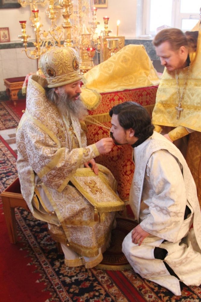 После «Херувимской песни» в сан иерея был рукоположен клирик Воскресенского собора г. Йошкар-Олы диакон Никифор Захаров. После Евхаристического канона в диаконский сан был рукоположен Евгений Самойлов, выпускник Московской Духовной семинарии.