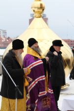 Как отметил Владыка, собор своим внешним архитектурным обликом является крестово-купольным. Над алтарем расположены купол и Честный и Животворящий крест, который освящает все окрест. Это свидетельствует о том, что сие место святое, потому что здесь, в алтаре, совершается непостижимая для человеческого ума тайна, когда обычный стол, сооруженный руками, становиться престолом Божиим. Сам Господь восседает на нем. Здесь совершается великое Таинство, Таинство святой Евхаристии.