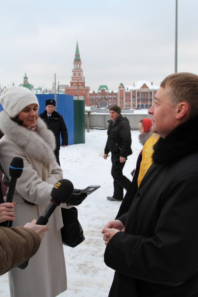 Во время молебна присутствовал Глава Республики Марий Эл Л.И. Маркелов, члены Правительства Республики Марий Эл и многочисленные верующие, пожелавшие принять участие в этом историческом событии.