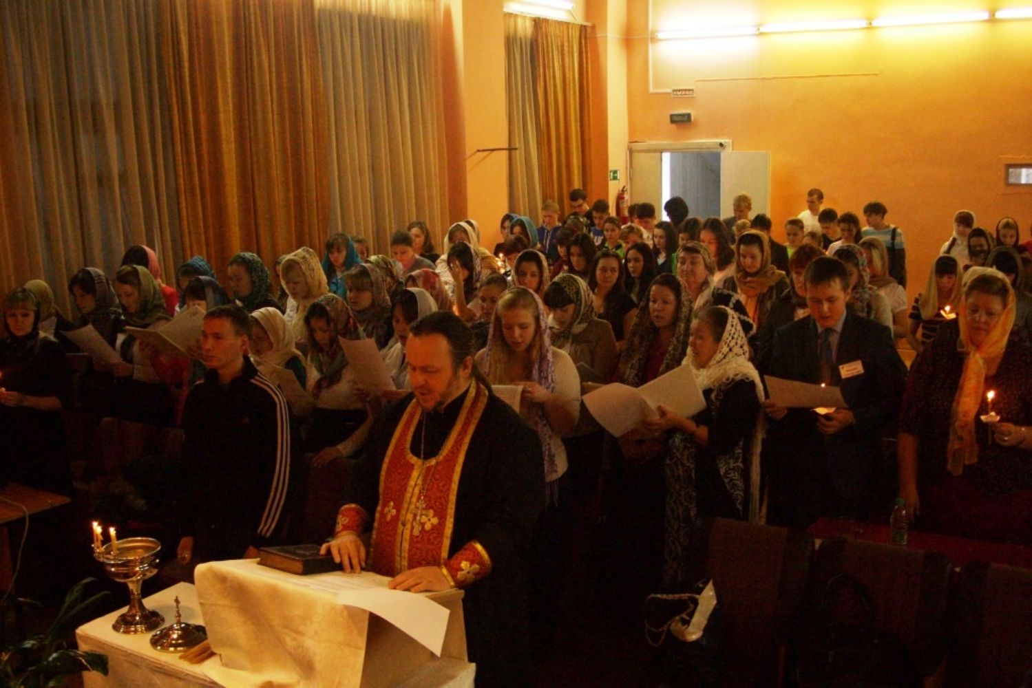 Открылась конференция молебном преподобному Сергию Радонежскому пред его святым образом. Собравшиеся в зале, как и на предыдущих Чтениях, стояли с зажженными свечами. По совершении молебна иерей Димитрий Вылекжанин окропил всех святой водой. Далее по программе конференции была работа пяти секций под руководством преподавателей колледжа. После обеденного перерыва участники Чтений вновь собрались в актовом зале на пленарное заседание.