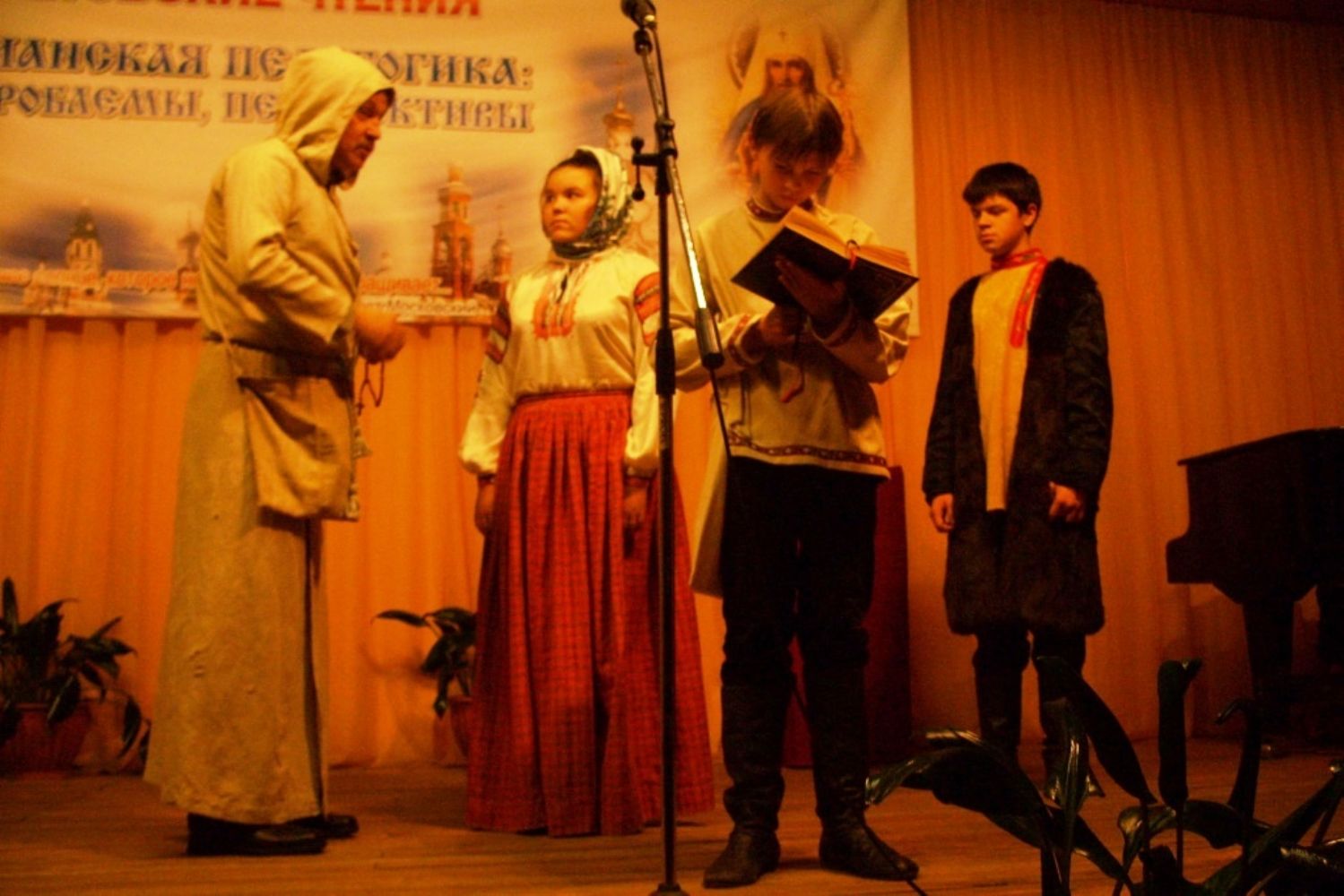 С приветственным словом и пожеланиями успешной работы к участникам конференции обратился А.Л. Плотников, который высоко оценил роль духовной составляющей в жизни общества, в воспитании детей и молодежи. Директор колледжа С.Я. Яровикова выступила с рассказом о житии преподобного Сергия Радонежского. Несомненным украшением конференции стала инсценировка «Встреча отрока Варфоломея» в исполнении актеров образцового театра-студии «У Мурочки».