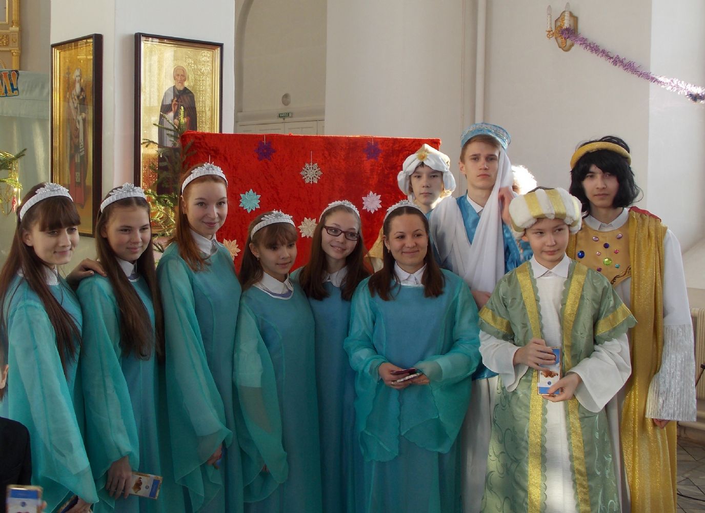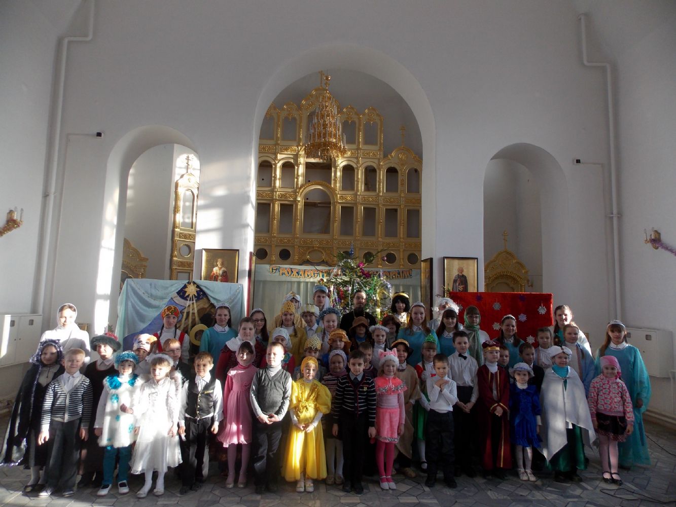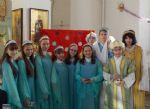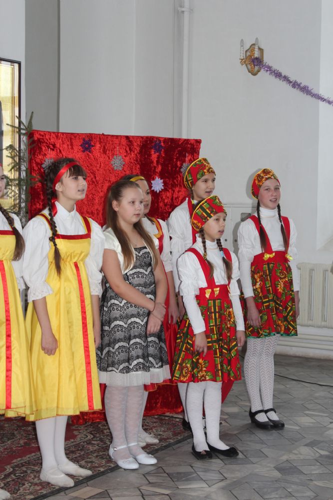 Вслед за традиционным ночным богослужением на приходе прошел рождественский утренник: перед родителями и прихожанами выступили учащиеся воскресной школы. Стихи, песни, танцы, костюмированное действо, в живых лицах раскрывающее историю рождества Иисуса Христа. И конечно – подарки и общая трапеза.