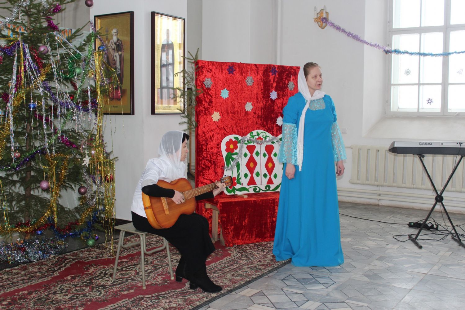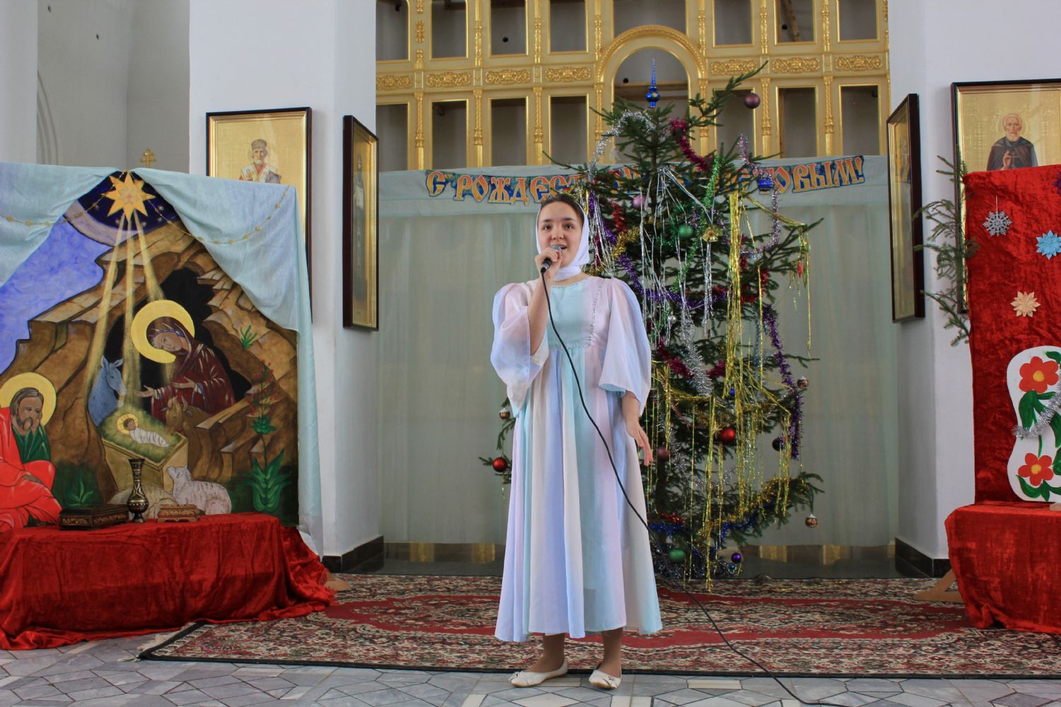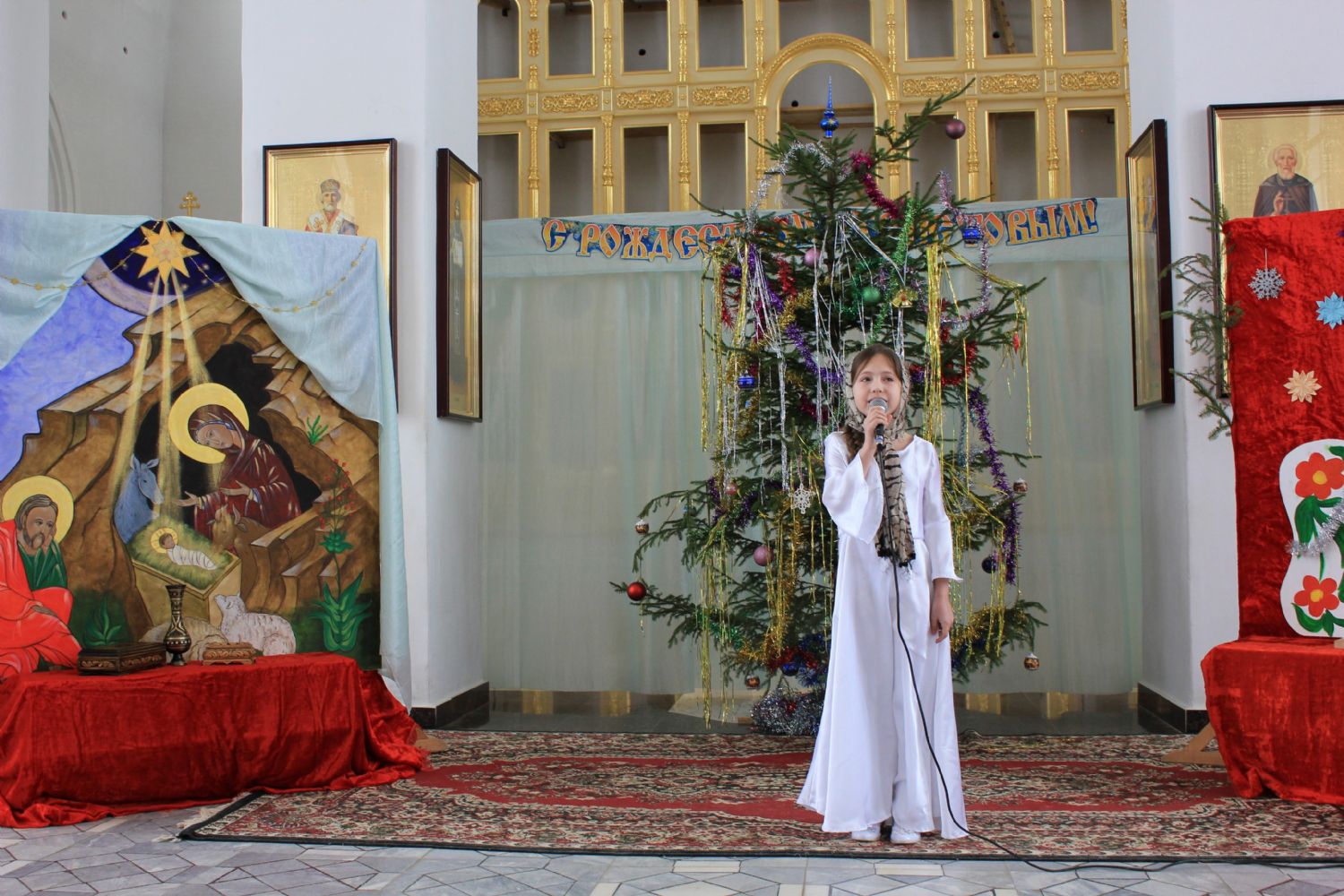 Вслед за традиционным ночным богослужением на приходе прошел рождественский утренник: перед родителями и прихожанами выступили учащиеся воскресной школы. Стихи, песни, танцы, костюмированное действо, в живых лицах раскрывающее историю рождества Иисуса Христа. И конечно – подарки и общая трапеза.