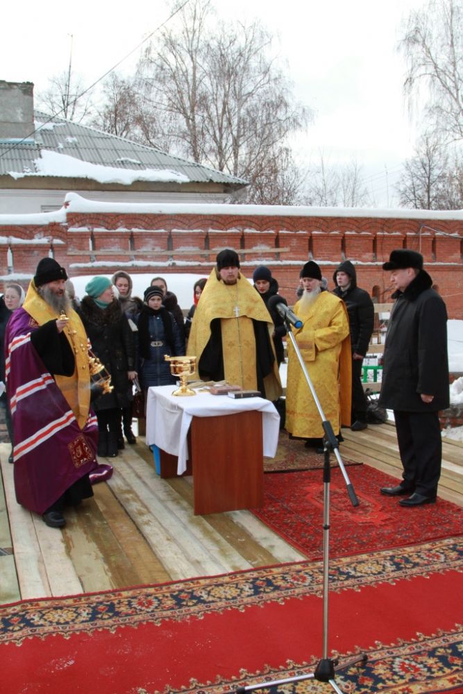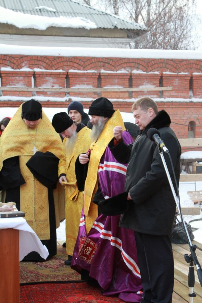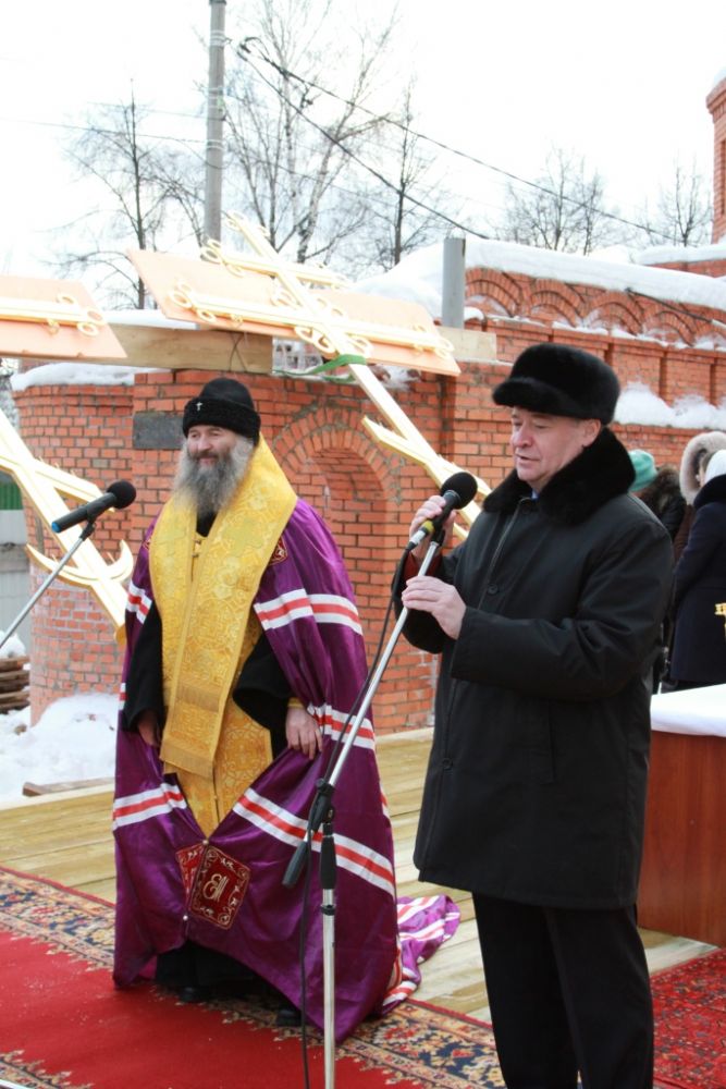 И.о. Главы Республики Л.И.Маркелов так же обратился к собравшимся: «Денно и нощно монашки молились здесь за наш город и за землю нашу. Потом, в годы лихие поругания святынь, все было уничтожено и снесено. А сегодня время созидать и создавать. Мы восстанавливаем разрушенный храм и надеемся, что в 2015 году мы закончим строительство и передадим храм для освящения уважаемому Владыке, а после освящения храм будет открыт для всех верующих».