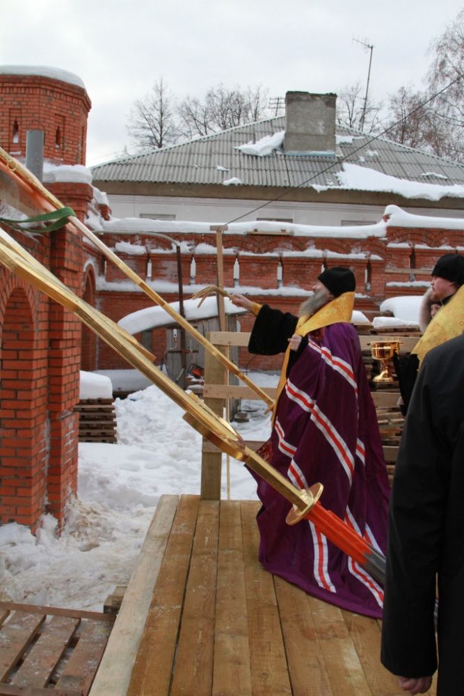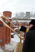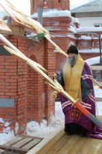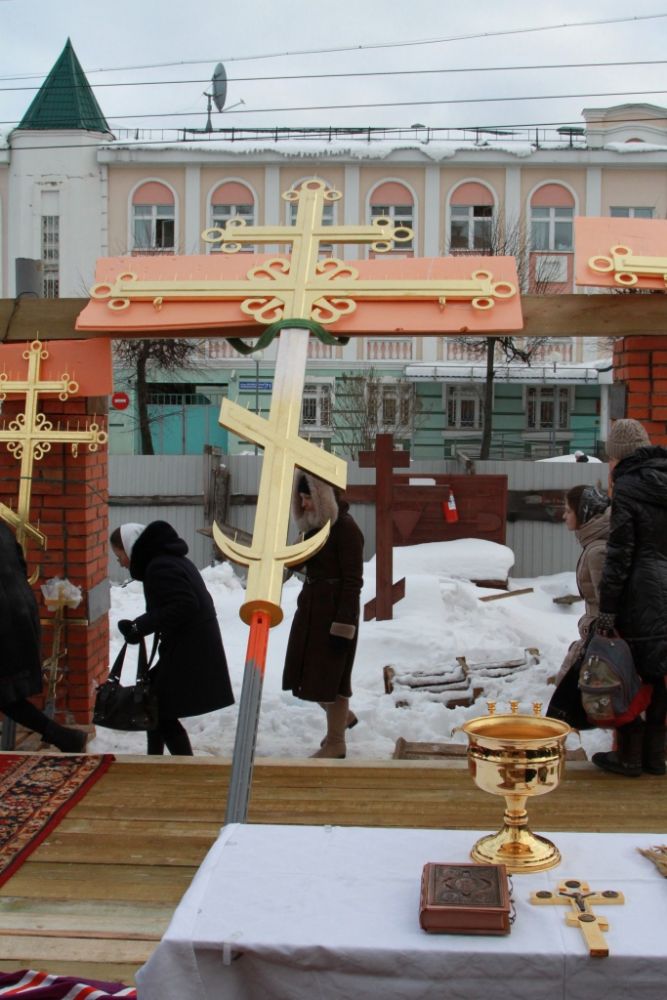 Два больших креста установят на колокольню и центральный купол. Вес каждого из них около 600 килограмм, а высота 4,5 метра. Кроме того освещены два маленьких креста, весом по 10 кг, которые будут установлены над боковыми входами. И еще один крест, весом порядка 100 килограммов, - водружен над главным входом в храм. Всего для Входо-Иерусалимского храма было освящено пять крестов. Изготовитель – реставрационно-строительная компания «Гемма».