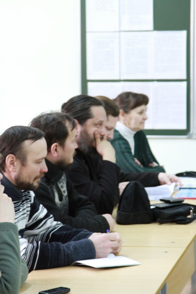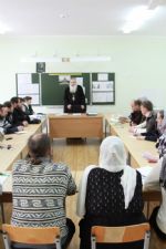 В работе круглого стола приняли участие 26 человек из разных районов республики. На встрече были рассмотрены вопросы преподавания в общеобразовательных школах «Основ православной культуры», учебно-методического обеспечения воскресных школ новыми изданиями, подготовленными синодальным отделом религиозного образования и катехизации, о задачах по реализации духовно-нравственного компонента в рамках Федерального государственного образовательного стандарта дошкольного образования, о работе в ВУЗах. Также были подняты вопросы проведения в нашей епархии конкурса «За нравственный подвиг учителя», о предкрещальной катехизации.