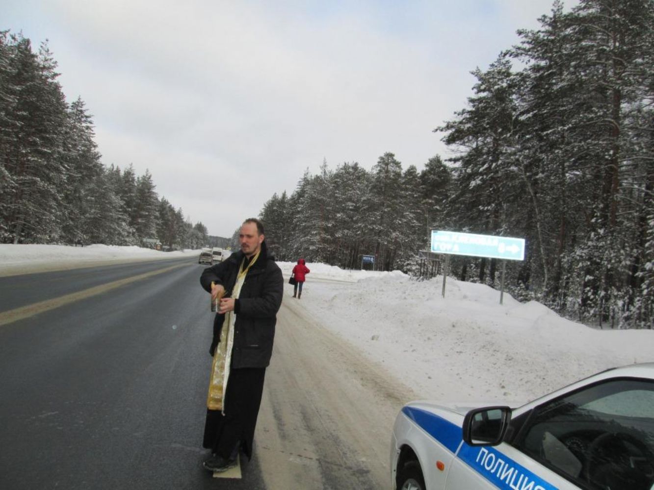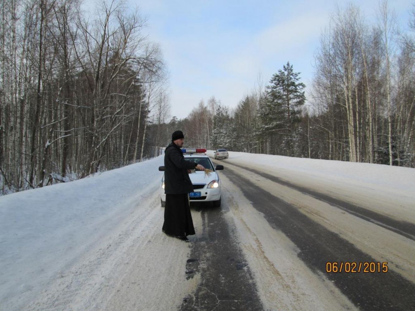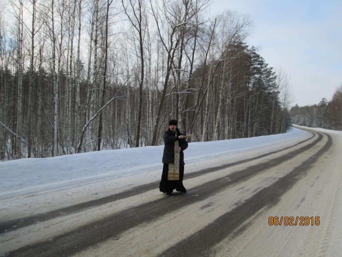 В феврале настоятель храма святителя Николая Мирликийского, чудотворца иерей Антоний Блинов освятил дороги Звениговского района.