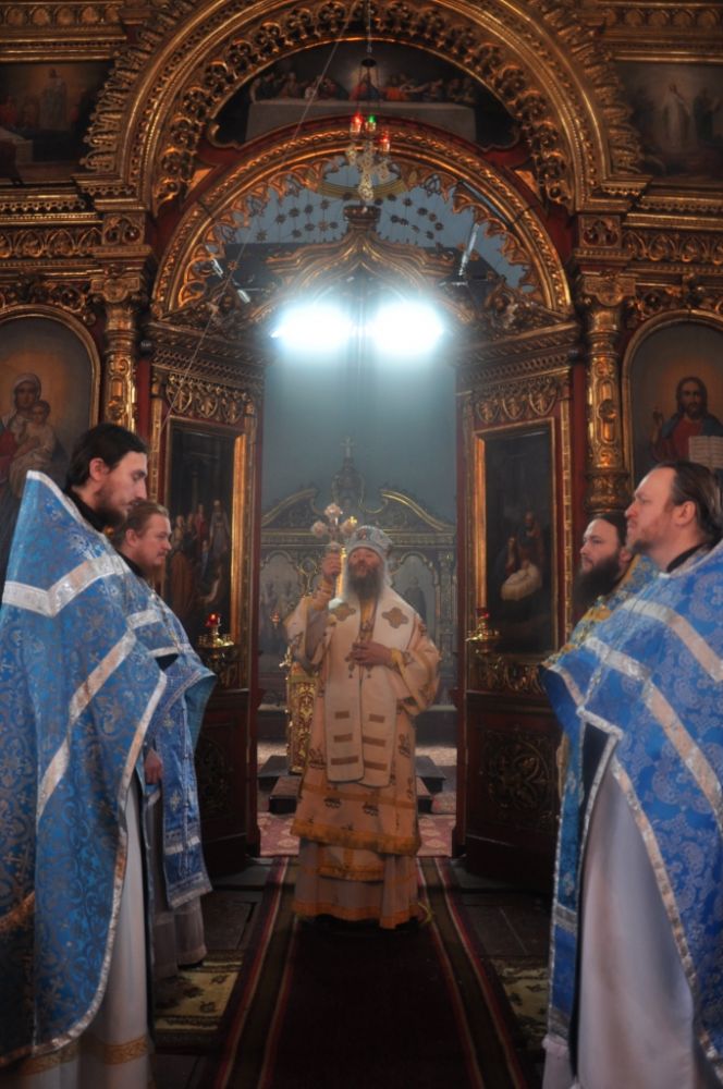 После Божественной литургии был совершен молебен и крестный ход. В завершении богослужения Владыка обратился к молящимся с архипастырским словом.