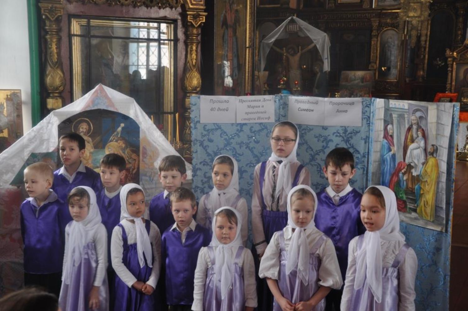 По окончании Литургии воспитанники воскресной школы выступили перед Владыкой и прихожанами с песнопениями, прославляя Богомладенца Христа.