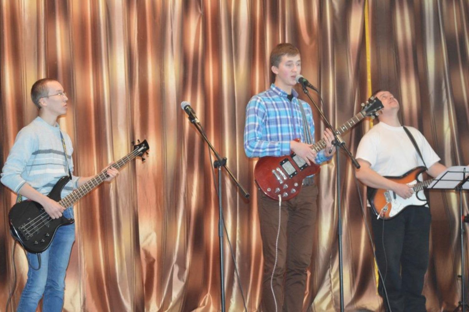 Затем все собрались в зале и перед школьниками выступила вокально-инструментальная группа "Друзья".