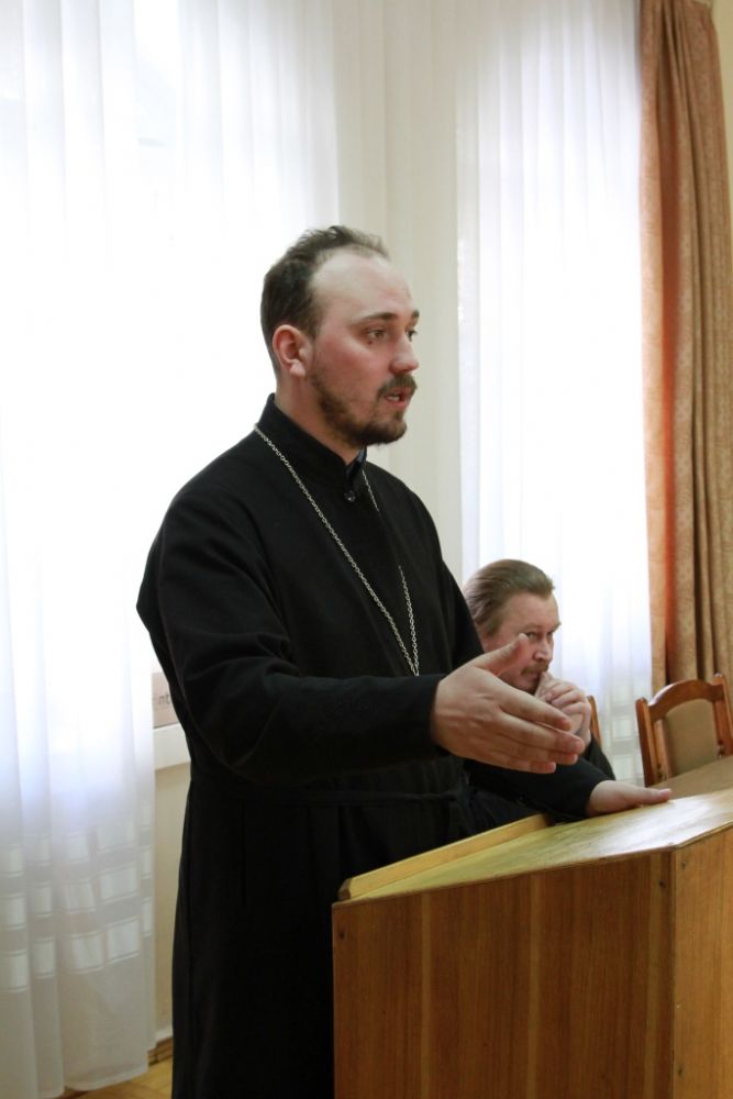 Открыл собрание руководитель отдела социального служения Йошкар-Олинской епархии протоиерей Сергий Поглазов. Он рассказал о необходимости подобных встреч для продуктивной работы. Далее выступил иерей Алексий Вязов, ответственный за направление «Защита материнства, детства и семейных ценностей», помощник руководителя отдела социального служения. Главная мысль выступления отца Алексия: Церковь должна идти к страждущим, неимущим, бездомным людям, принимать участие в их жизни. Батюшка привел много реальных примеров, рассказал о людях, которым была оказана помощь, о направлениях работы отдела: пункта гуманитарной помощи населению, защиты жизни нерожденных детей.