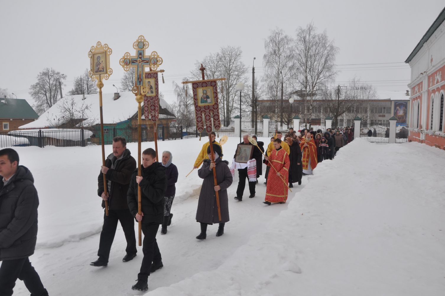 В Оршанском храме Владыке сослужили настоятель храма священник Димитрий Вылекжанин и настоятель Покровского храма с. Упша протоиерей Михаил Нехорошков. После Божественной литургии был совершен молебен сщмч. Харалампию и крестный ход.