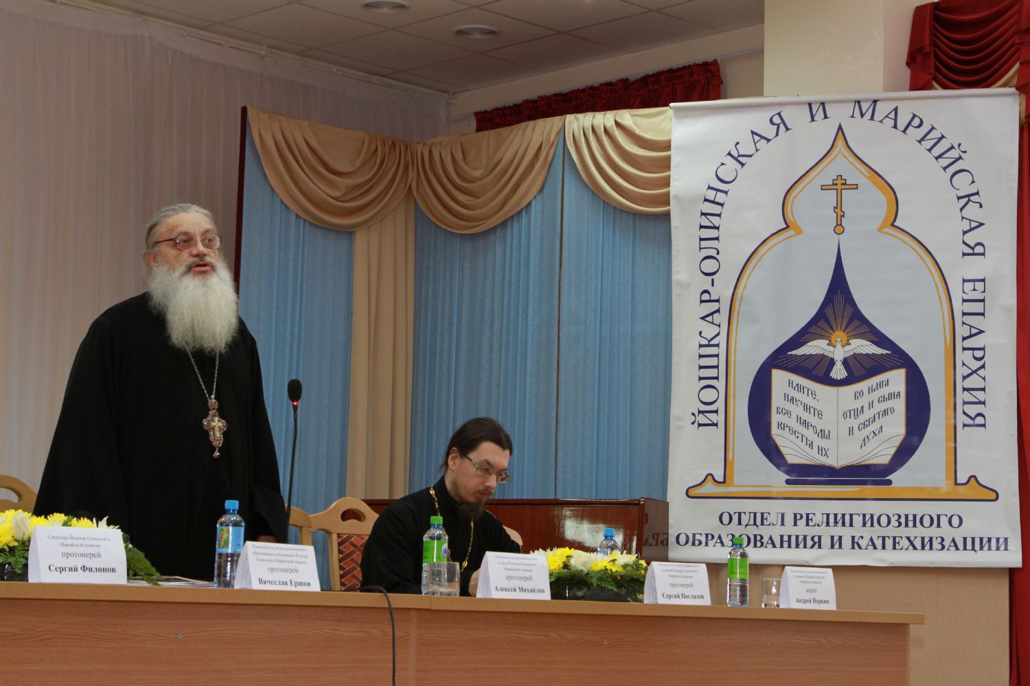 Так же с докладами выступили Н.А. Калугина, катехизатор Волжского благочиния, Л.Л. Герасимова, руководитель центра «Светоч» и протоиерей Евгений Сурков, директор МОУ «Гимназия имени Сергия Радонежского г. Йошкар-Олы».
