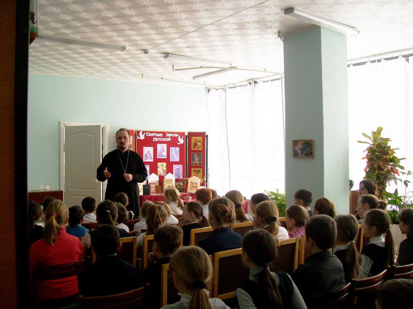 На открытии декады православной книги, которое состоялось 2 марта, присутствовали дети из средней школы № 1 и Звениговского лицея. Был приглашен и настоятель Свято-Никольской церкви иерей Антоний Блинов. Мероприятие «Живое слово мудрости духовной», подготовленное заведующей библиотекой Т.В. Рыбаковой, заинтересовало ребят. Содержательно оформленная выставка православных книг: «Библия», «Евангелие», «Молитвослов», «Православная азбука для детей», «Жития русских Святых» и стенд «Русские Святые» послужили иллюстративным фоном рассказа. Дети внимательно слушали, а затем верно отвечали на вопросы. В конце встречи батюшка подарил библиотеке православные книги.